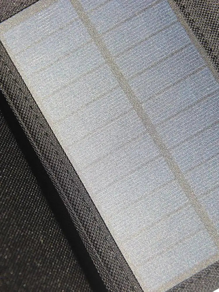 The solar panel uses highly efficient polycrystalline silicon cells with a 19% conversion rate, delivering faster charging by optimally absorbing sunlight. Thanks to an integrated LED indicator and robust safety features, including overvoltage and short-circuit protection, it ensures safe and reliable charging of your devices. The charger is durable, weatherproof, and compact (79 × 16.5 × 1 cm), making it easy to carry in backpacks or cars.