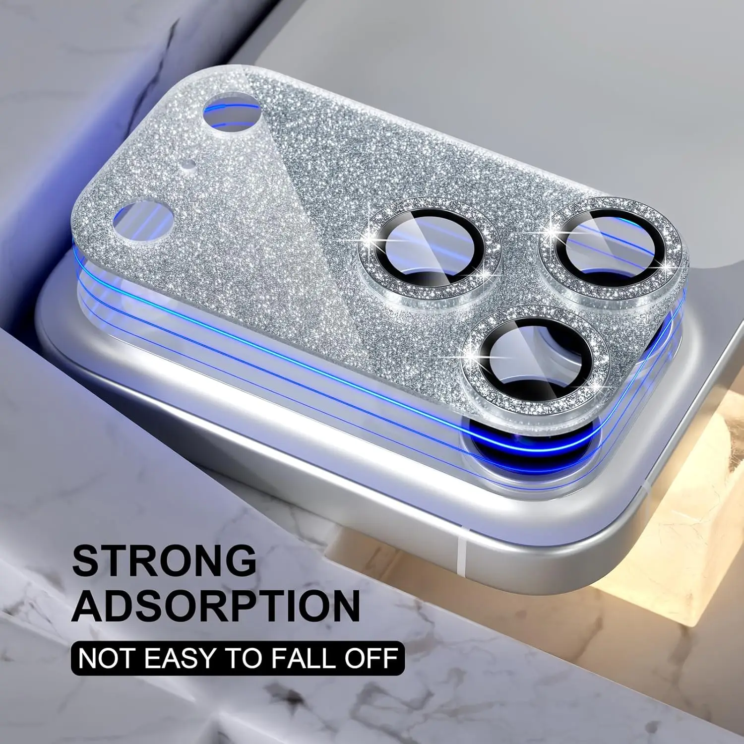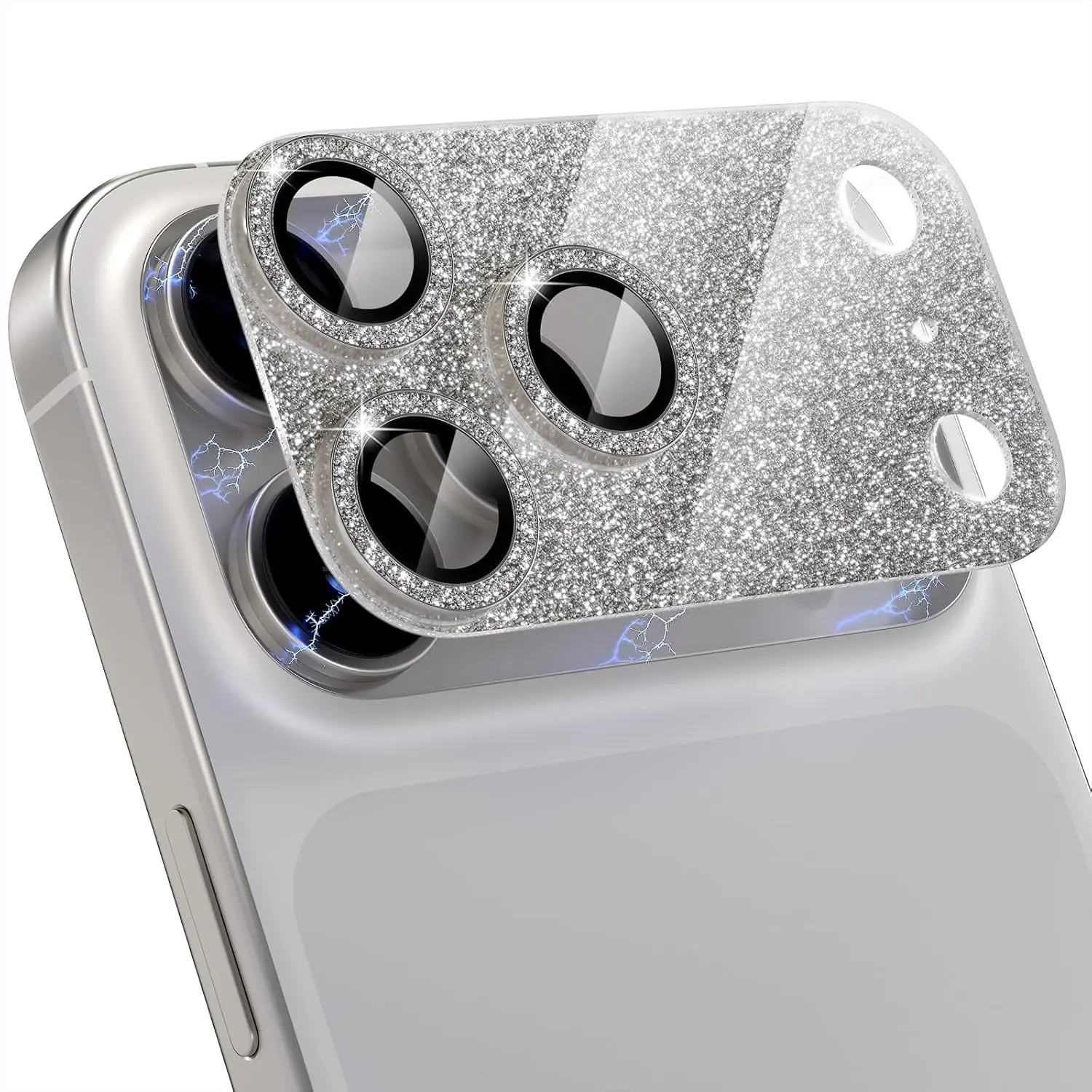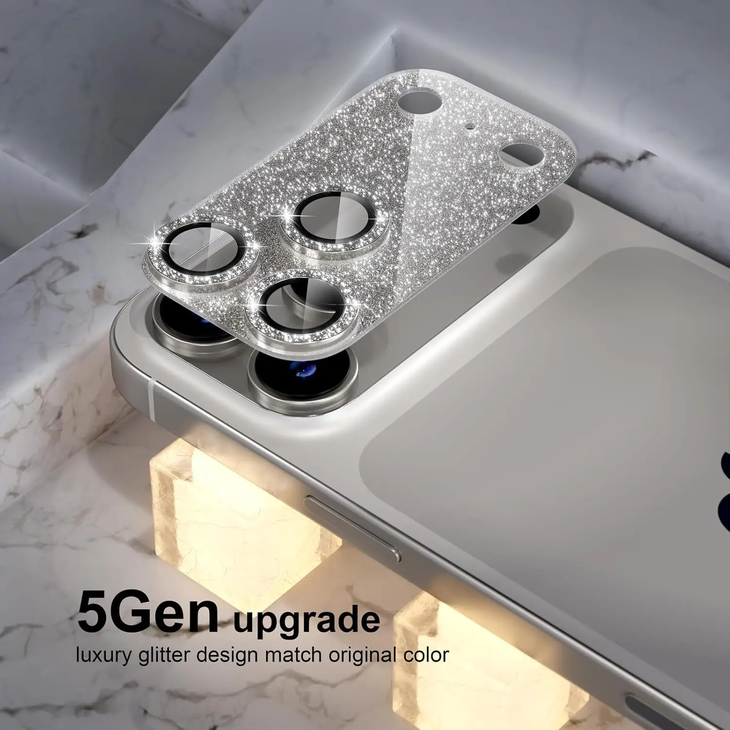 Glitter camera lens protector for iPhone 17 Pro Max with HD lens