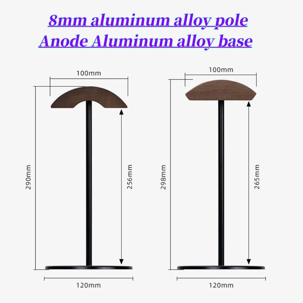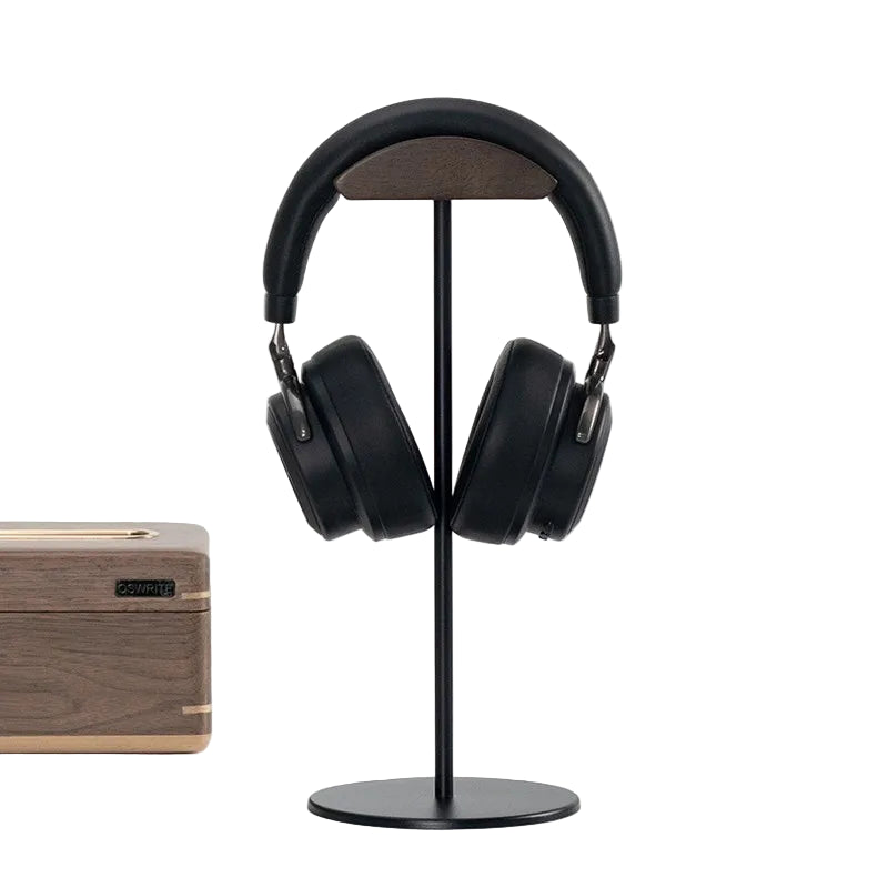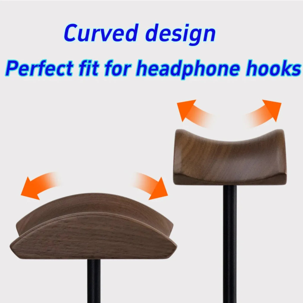 Walnut metal headphone stand, wooden holder, desktop