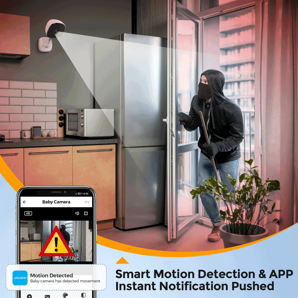Die Kamera verfügt über fortschrittliche AI-Bewegungserkennung bis zu 5 Metern. Bei erkannter Bewegung werden automatisch Alarme per E-Mail oder FTP-Bild gesendet. Zwei-Wege-Audio ermöglicht die Kommunikation direkt über die Kamera mit Ihrem Baby oder Haustier.