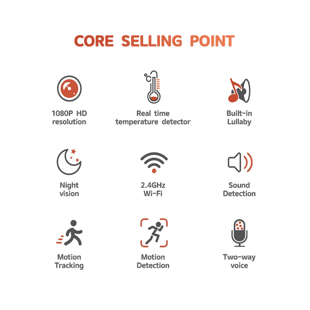 Die Kamera verfügt über eingebaute Wiegenlieder, die Ihrem Baby helfen, ruhig einzuschlafen. Dank der Zwei-Wege-Audiofunktion können Sie direkt mit Ihrem Kind sprechen oder beruhigende Geräusche abspielen. Die automatische Bewegungs- und Temperatursensorik sorgt dafür, dass Sie sofort informiert werden, wenn sich etwas im Zimmer Ihres Babys verändert oder die Raumtemperatur von der Norm abweicht.