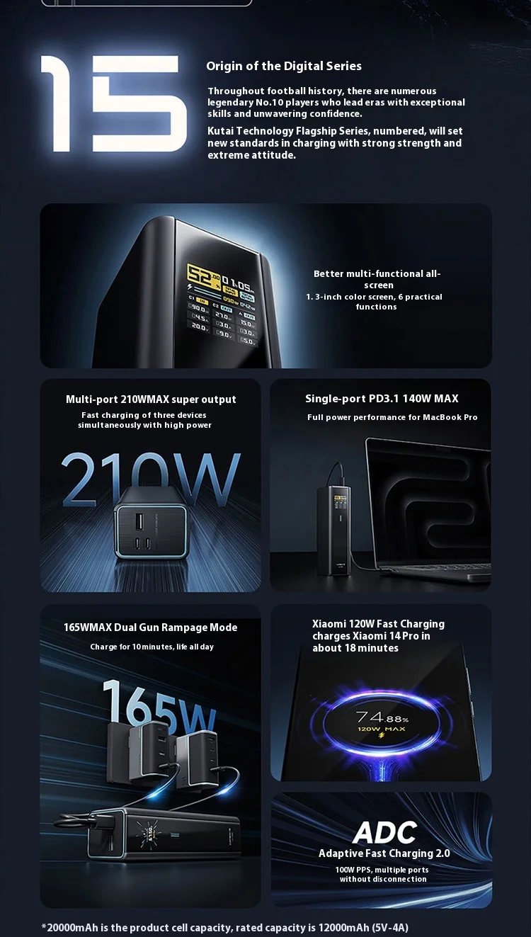 20000mAh Powerbank 210W Schnellladung mit USB-C PD