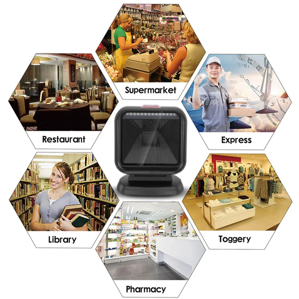 Der 2D Desktop-Barcodescanner mit USB-Anschluss bietet eine schnelle und zuverlässige Lösung für das Scannen von 1D- und 2D-Barcodes in Supermärkten, Einzelhandelsgeschäften, Apotheken, Restaurants, Logistikzentren und weiteren Branchen. Dank der freihändigen Bedienung eignet sich der Scanner ideal für den Einsatz an Kassen und Theken – einfach aufstellen und sofort loslegen.