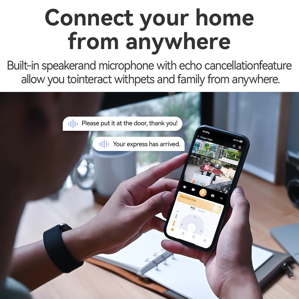 Der Cruiser Triple ist eine hochmoderne Außenkamera mit drei Objektiven, die für eine umfassende und detailreiche Überwachung sorgt. Mit einer Auflösung von insgesamt 11 MP (3 + 3 + 5 MP) liefert die Kamera gestochen scharfe Bilder aus verschiedenen Blickwinkeln, die sich nahtlos in der App verbinden lassen. Die Click2Track Multi-Lens-Verknüpfung ermöglicht es, jederzeit direkt auf einen Bereich des festen Objektivs zu tippen, woraufhin das PTZ-Objektiv automatisch dorthin schwenkt und den gewünschten Bereich scharfstellt.