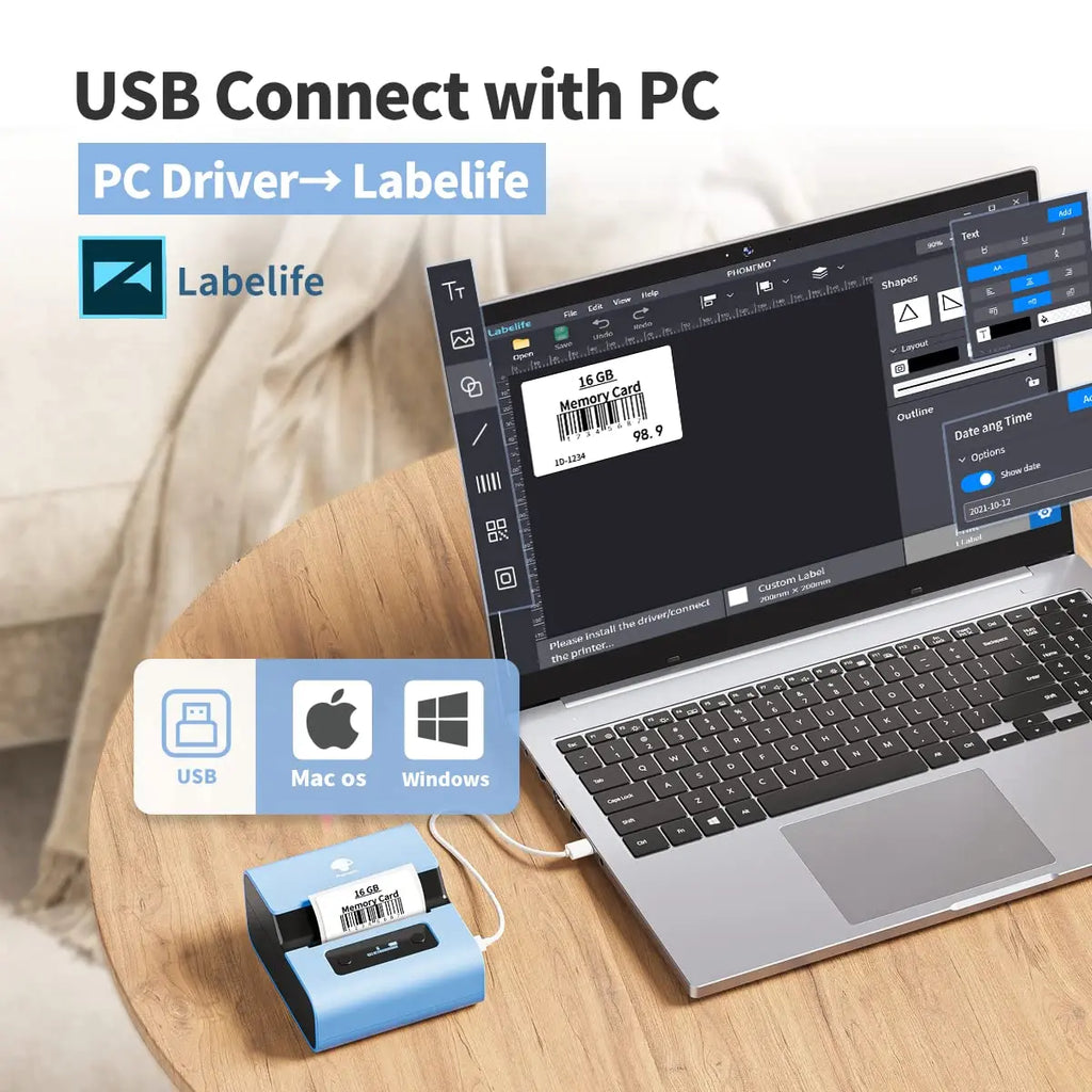 Der Phomemo M221 3‑Zoll Bluetooth Etikettendrucker ist bestens geeignet für kleine Unternehmen und das Heimbüro. Mit einer Druckbreite von 20–75 mm und einer Auflösung von 203 dpi bietet er flexible Einsatzmöglichkeiten – von Adress‑ und Barcodeetiketten bis zu Produkt‑, Kabel‑ oder Schmuckaufklebern. Die Verbindung erfolgt stabil über Bluetooth 4.2 (innerhalb von ca. 2 Sekunden verbunden), zusätzlich ist eine USB‑Schnittstelle für Mac und Windows eingebaut.