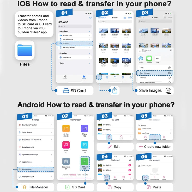 Dieser Kartenleser ist ideal für Fotografen, Schüler, Studenten oder alle, die mobile Datenübertragung ohne zusätzliche App benötigen. Plug & Play, einfach und schnell.