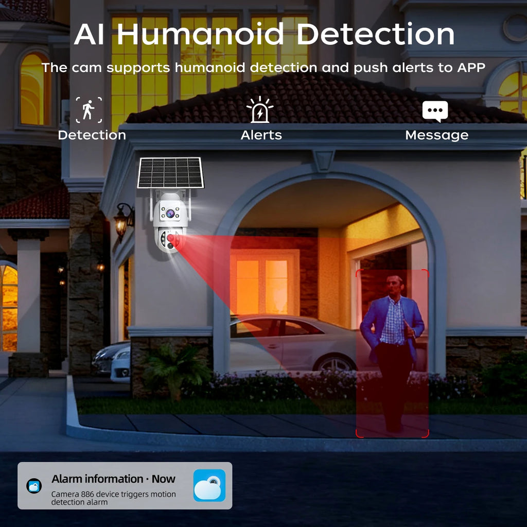 4K Solar WLAN Überwachungskamera Outdoor mit PTZ, Dual Objektiv, Nachtsicht, 360° Blickwinkel, Bewegungserkennung, Zwei-Wege-Audio