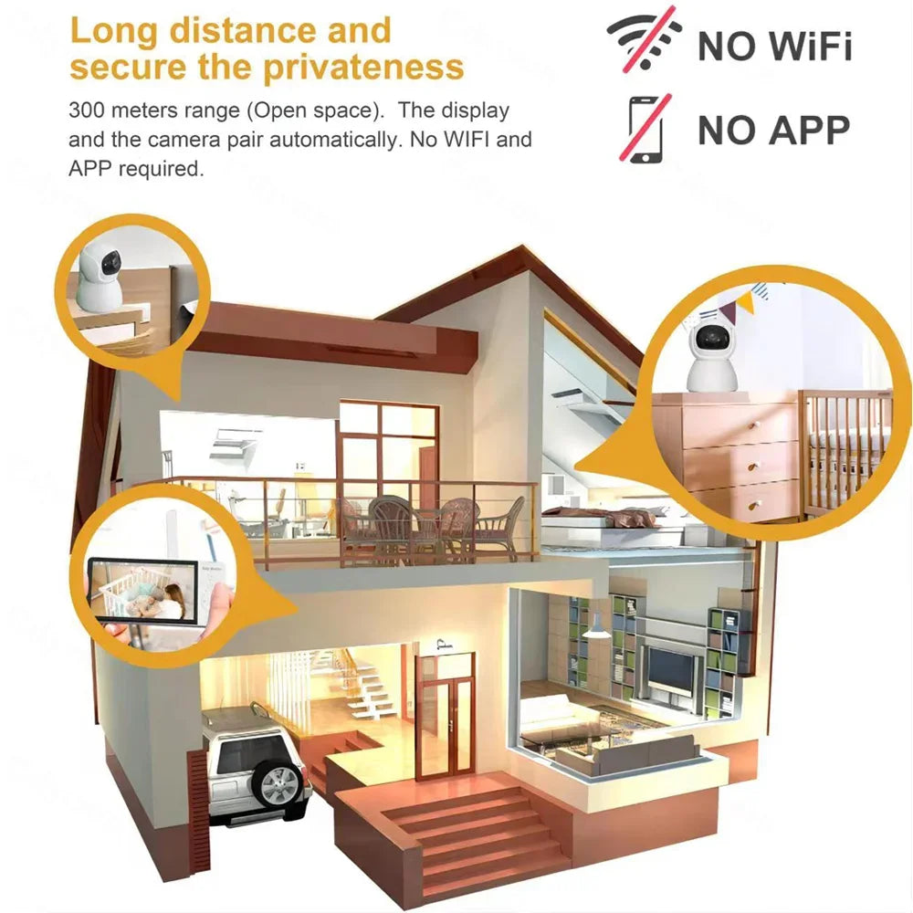 Der Monitor unterstützt die Aufnahme auf TF-Karten, damit Sie alle wertvollen Momente im Wachstum Ihres Babys festhalten können. Dank der kabellosen Verbindung und der Nutzung ohne WiFi oder App ist Ihre Privatsphäre jederzeit geschützt.