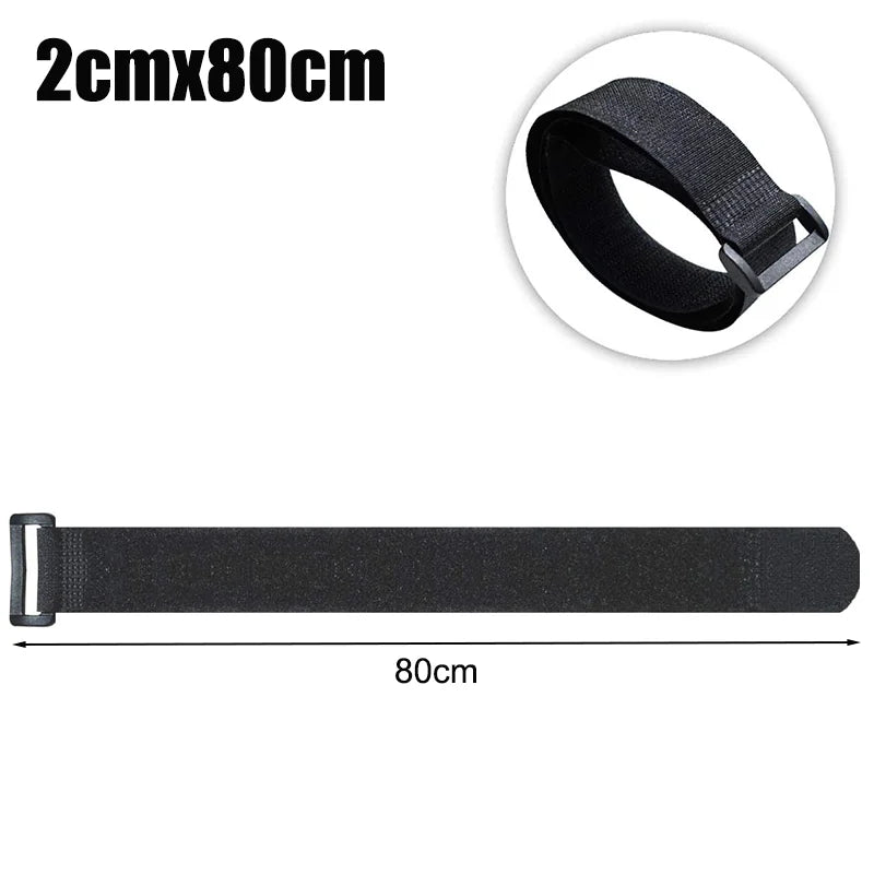 Die Handhabung ist besonders einfach. Die Riemen lassen sich leicht anziehen, entfernen und anpassen. Einfach den Klettverschluss öffnen, den Riemen um die Gegenstände wickeln, durch den Haken führen, straffziehen und den Verschluss sichern.