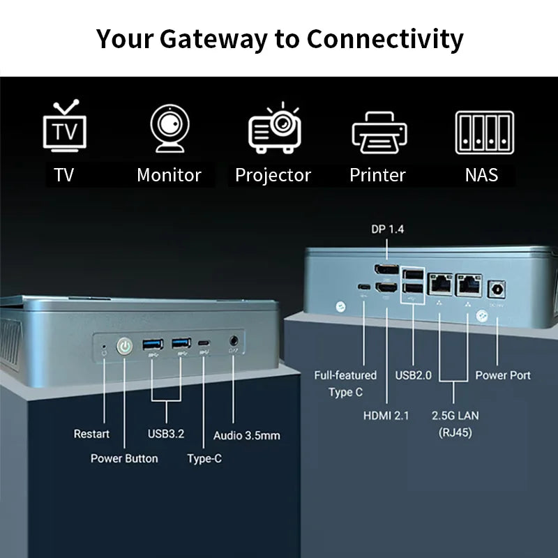 Mit seiner kompakten Größe, leistungsstarken Hardware und vielseitigen Anschlussmöglichkeiten ist dieser Mini-PC ideal für anspruchsvolle Multimedia-Anwendungen, Büroarbeitsplätze und flexible Nutzung in verschiedenen Umgebungen.