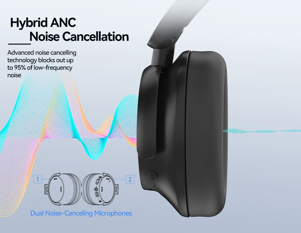 Die AUSDOM E7 PRO Over-Ear-Kopfhörer bieten kabellosen Hörgenuss auf höchstem Niveau. Mit aktiver Geräuschunterdrückung (ANC) reduzieren sie störende Umgebungsgeräusche effektiv, sodass Sie Ihre Musik, Podcasts oder Anrufe ungestört genießen können. Die Kopfhörer verfügen über eine lange Akkulaufzeit von bis zu 80 Stunden ohne ANC und 65 Stunden mit eingeschaltetem ANC, ideal für Reisen, Büro oder lange Arbeitstage.