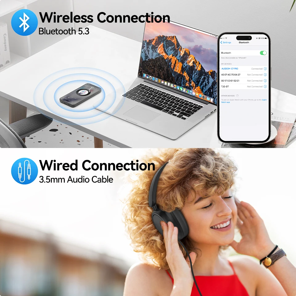 Dank Bluetooth 5.3 ist eine stabile und schnelle Verbindung zu Smartphones, Tablets oder Computern garantiert. Zusätzlich können Sie die Kopfhörer über das abnehmbare Kabel auch kabelgebunden nutzen. Der USB-C-Anschluss ermöglicht schnelles Aufladen in nur etwa 2,5 Stunden.