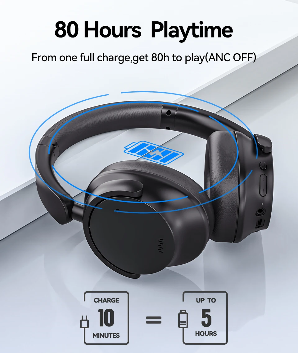 AUSDOM E7 PRO Kabellose Over-Ear ANC Kopfhörer 80h
