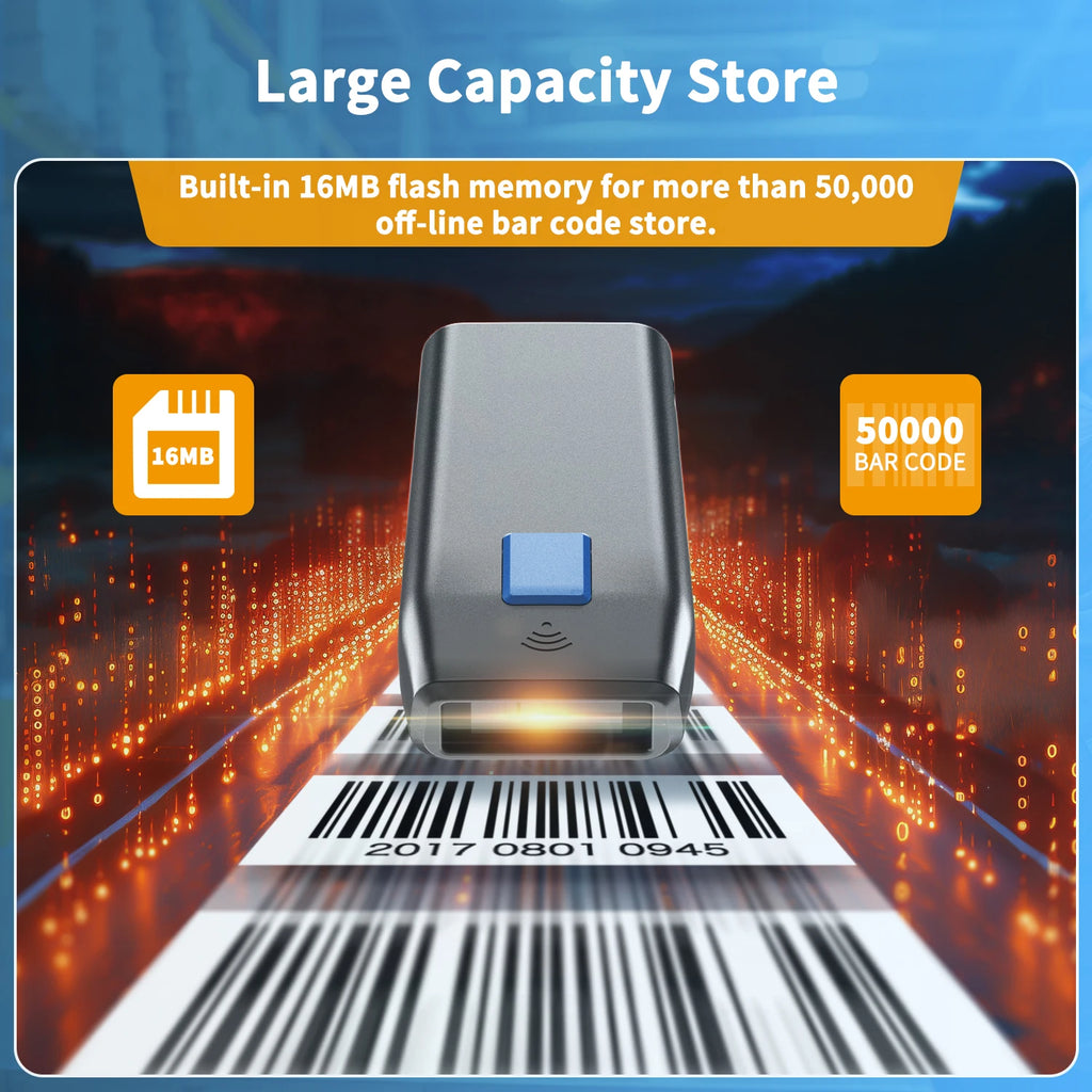 Dank Plug-and-Play-Funktion funktioniert das Gerät sofort ohne zusätzliche Treiberinstallation. Ein interner Speicher von 256 KB ermöglicht das Scannen von über 2600 Barcodes im Offline-Modus, ideal für mobile Einsätze ohne direkte Verbindung.