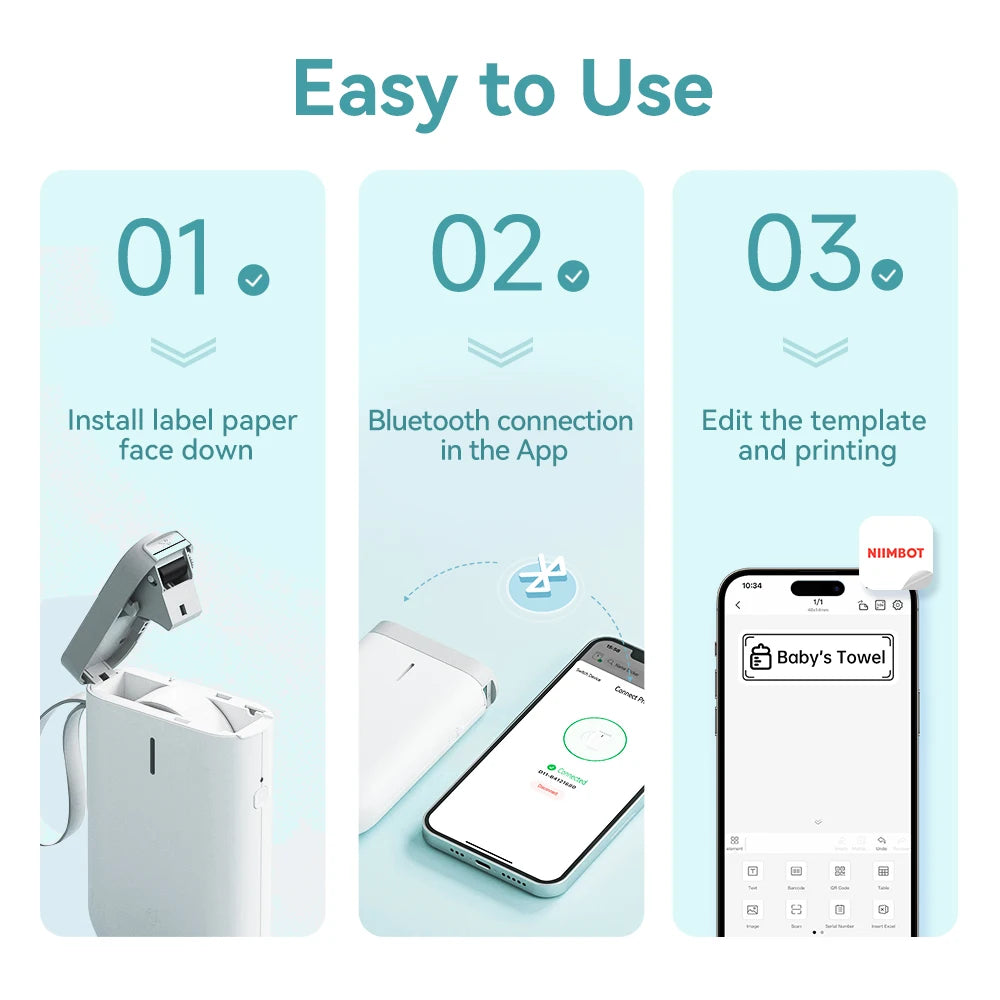 Der Niimbot D11 Mini-Etikettendrucker ist ein kompakter, kabelloser Bluetooth-Thermodrucker, ideal für den Heimgebrauch und kleine Büroaufgaben. Er verwendet Aufkleberpapier als Verbrauchsmaterial, benötigt keine Tinte oder Farbbänder und druckt sauber und effizient.