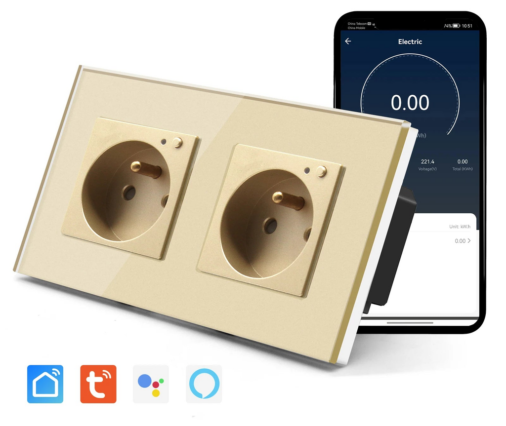 Doppelte Wandsteckdose mit Glas Panel, Smart Steuerung & Energieüberwachung für modernes Wohnen