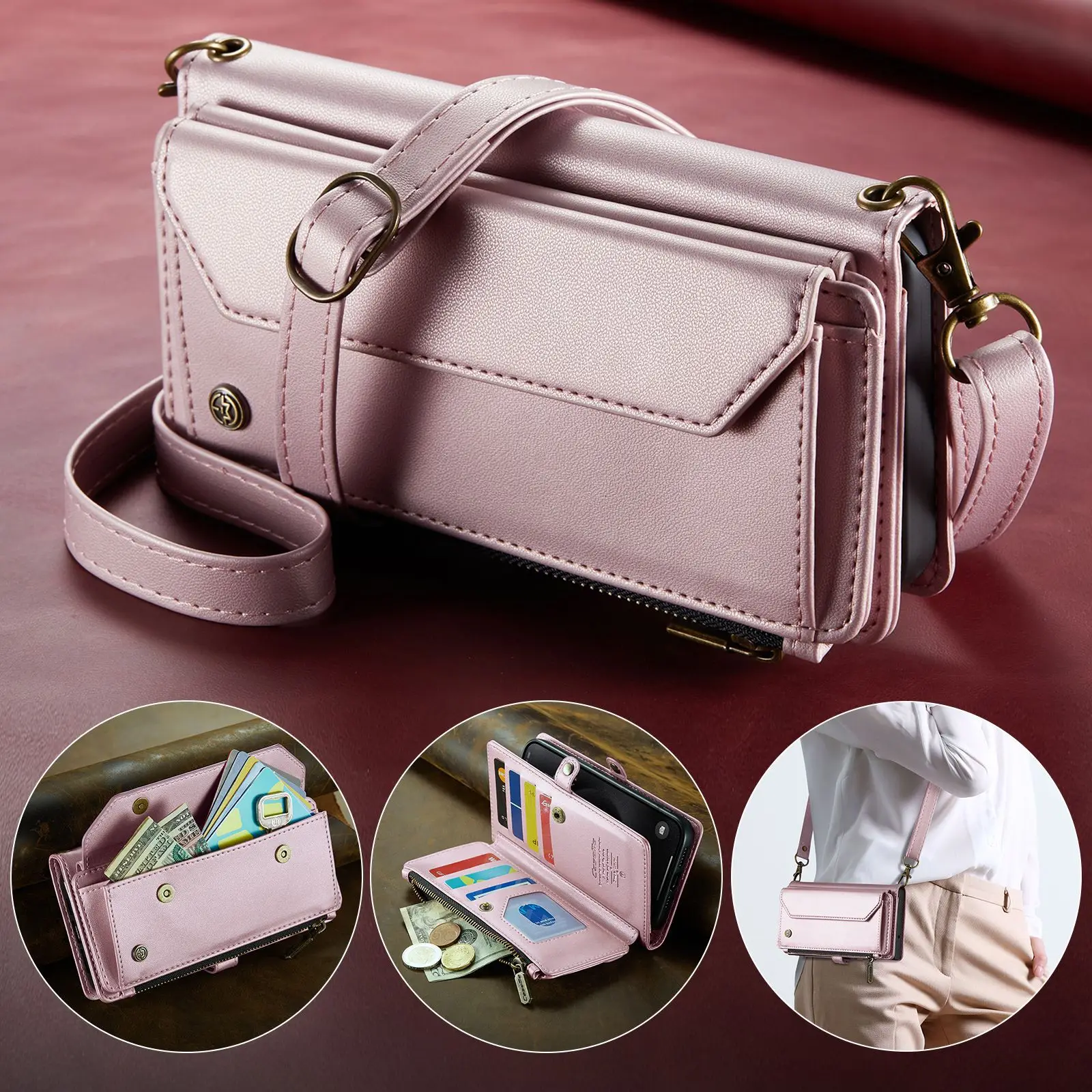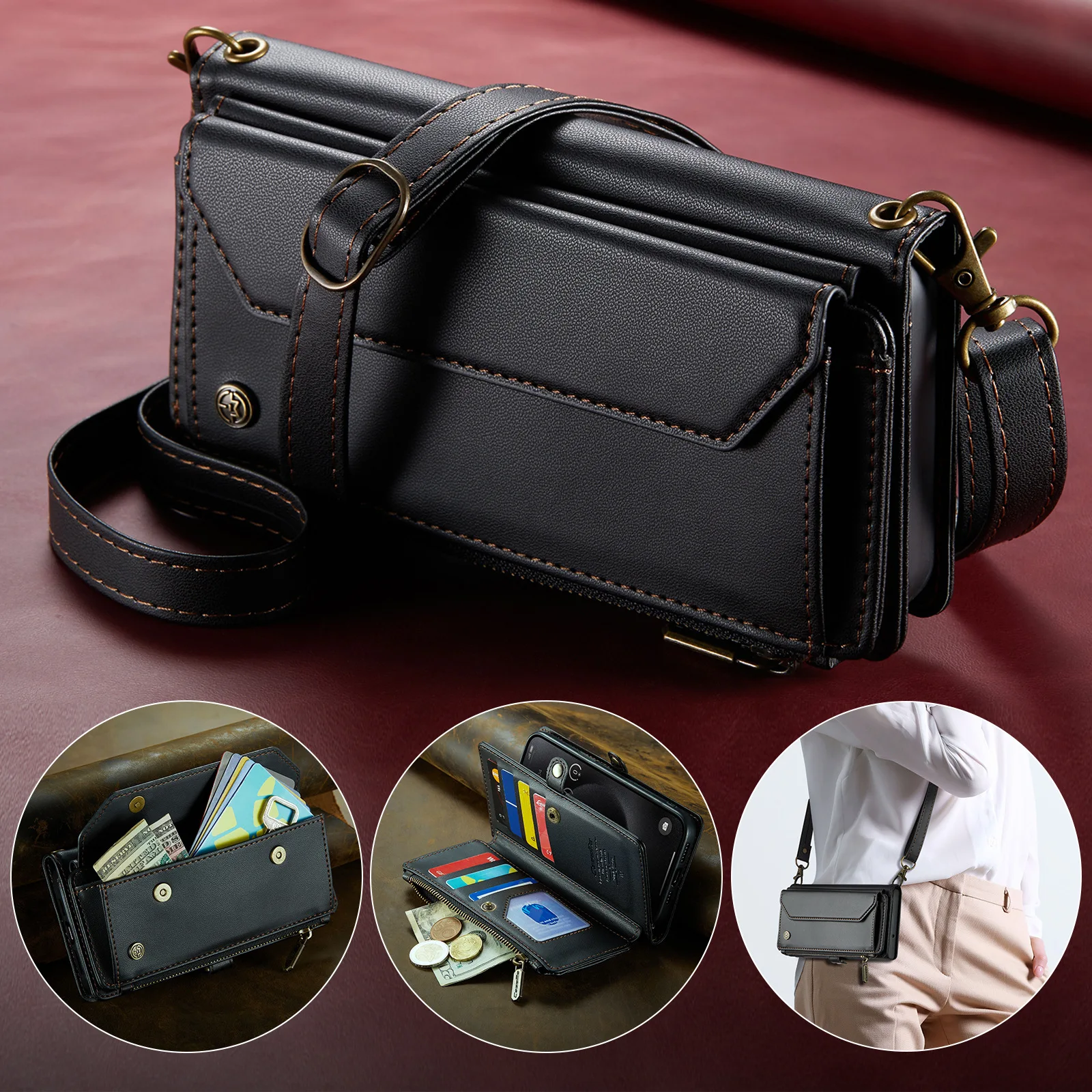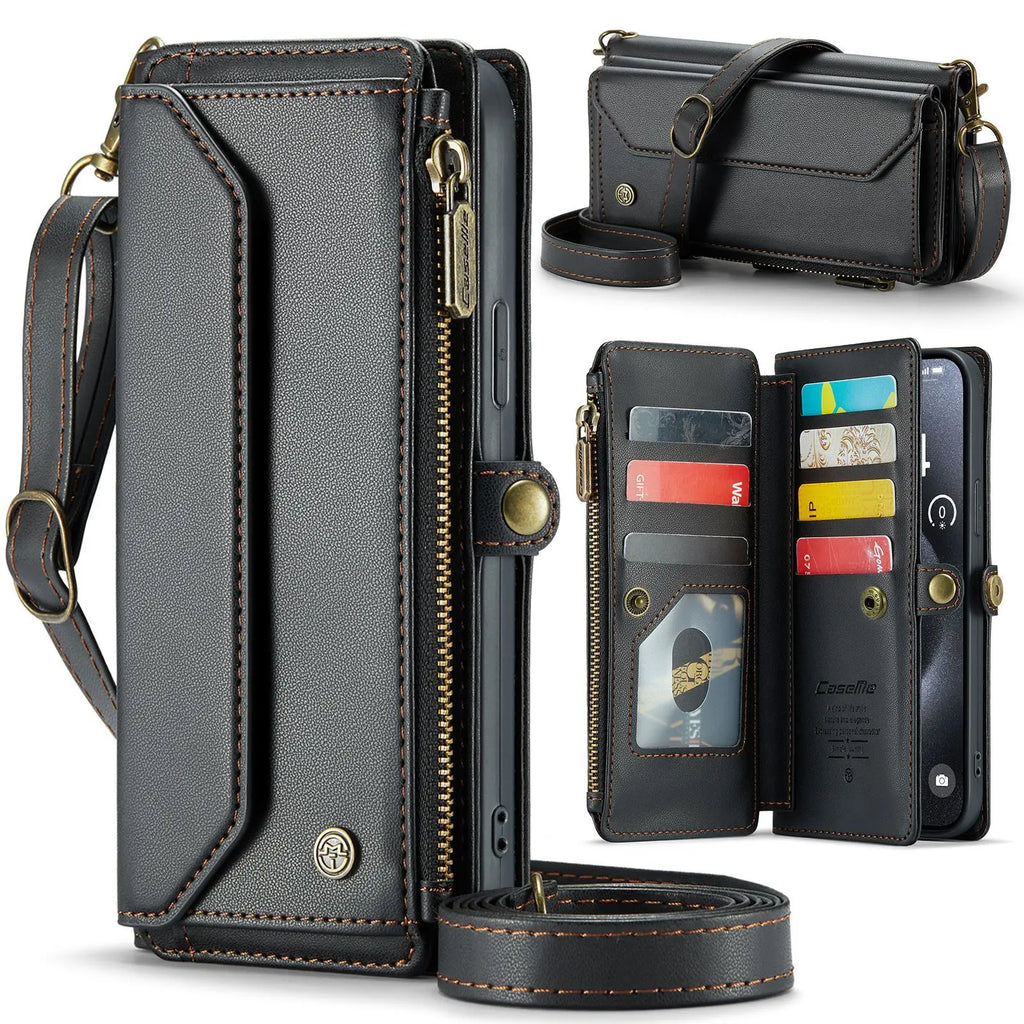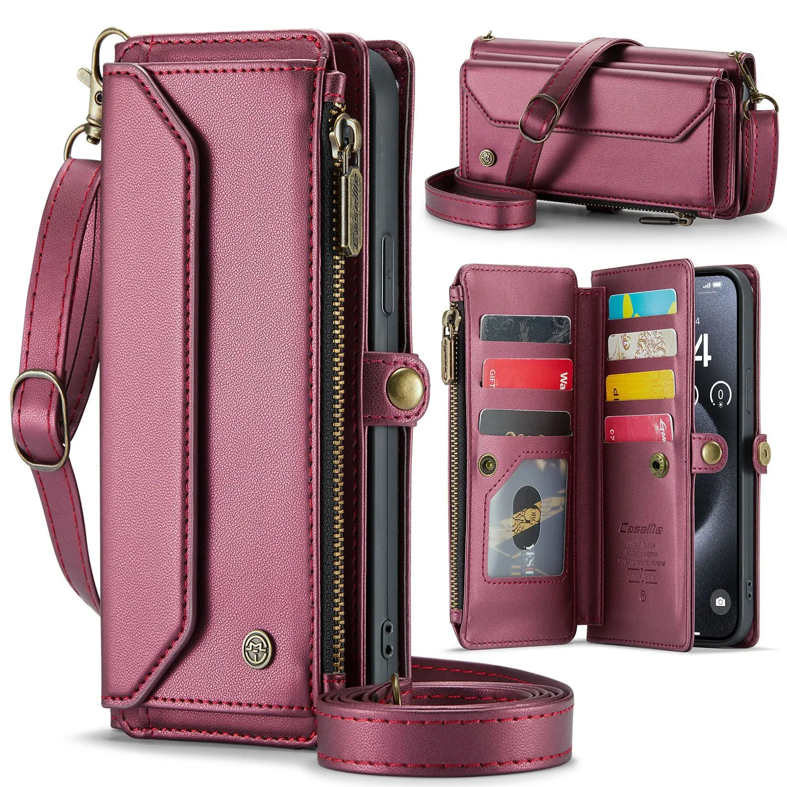 Drahtlose Lade Leder Wallet Hülle mit Crossbody für iPhone 17–11
