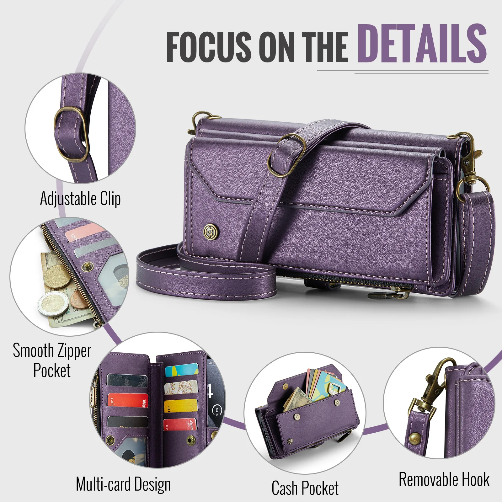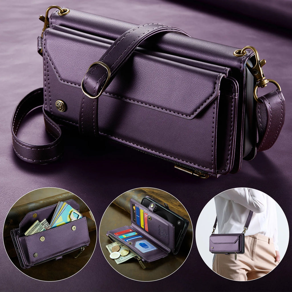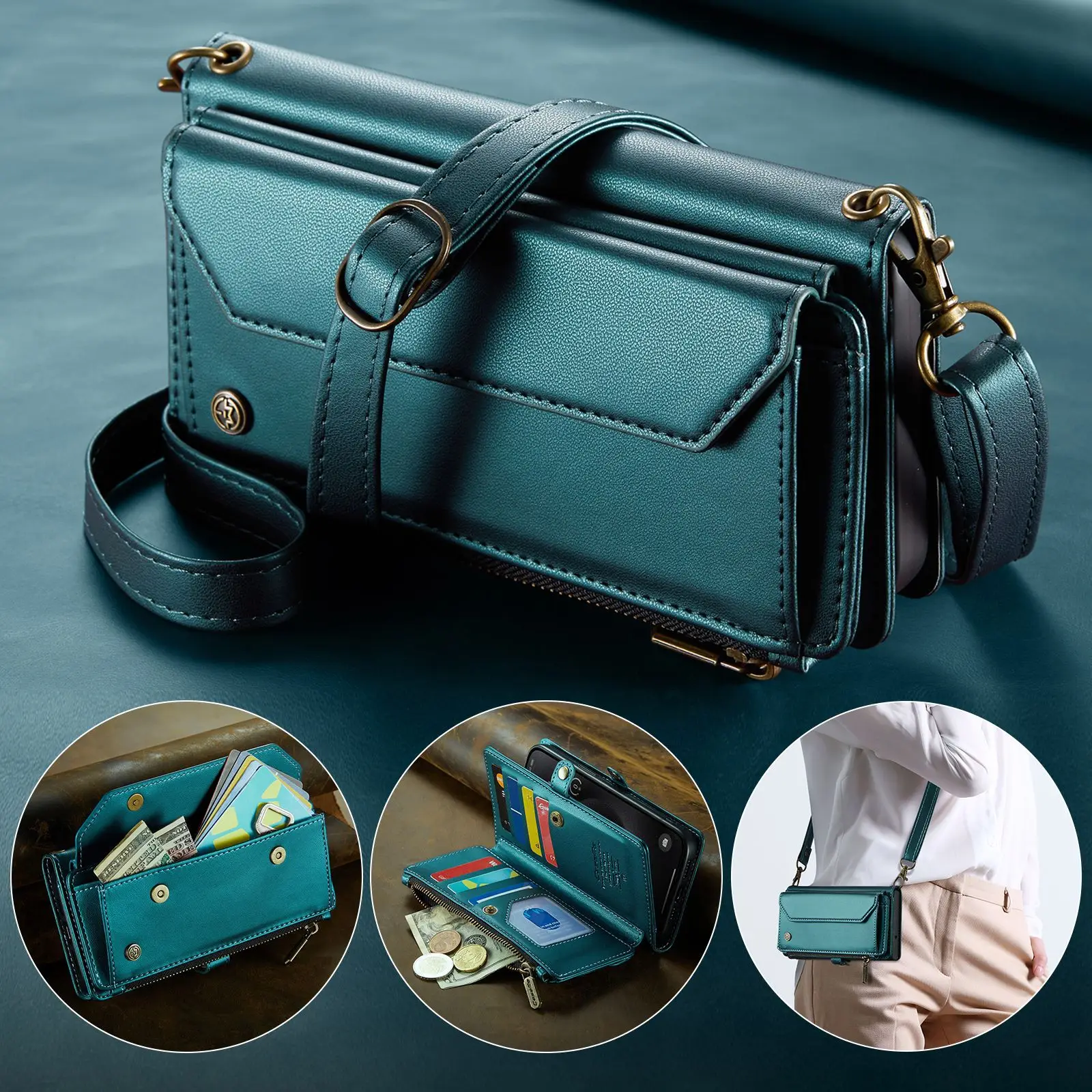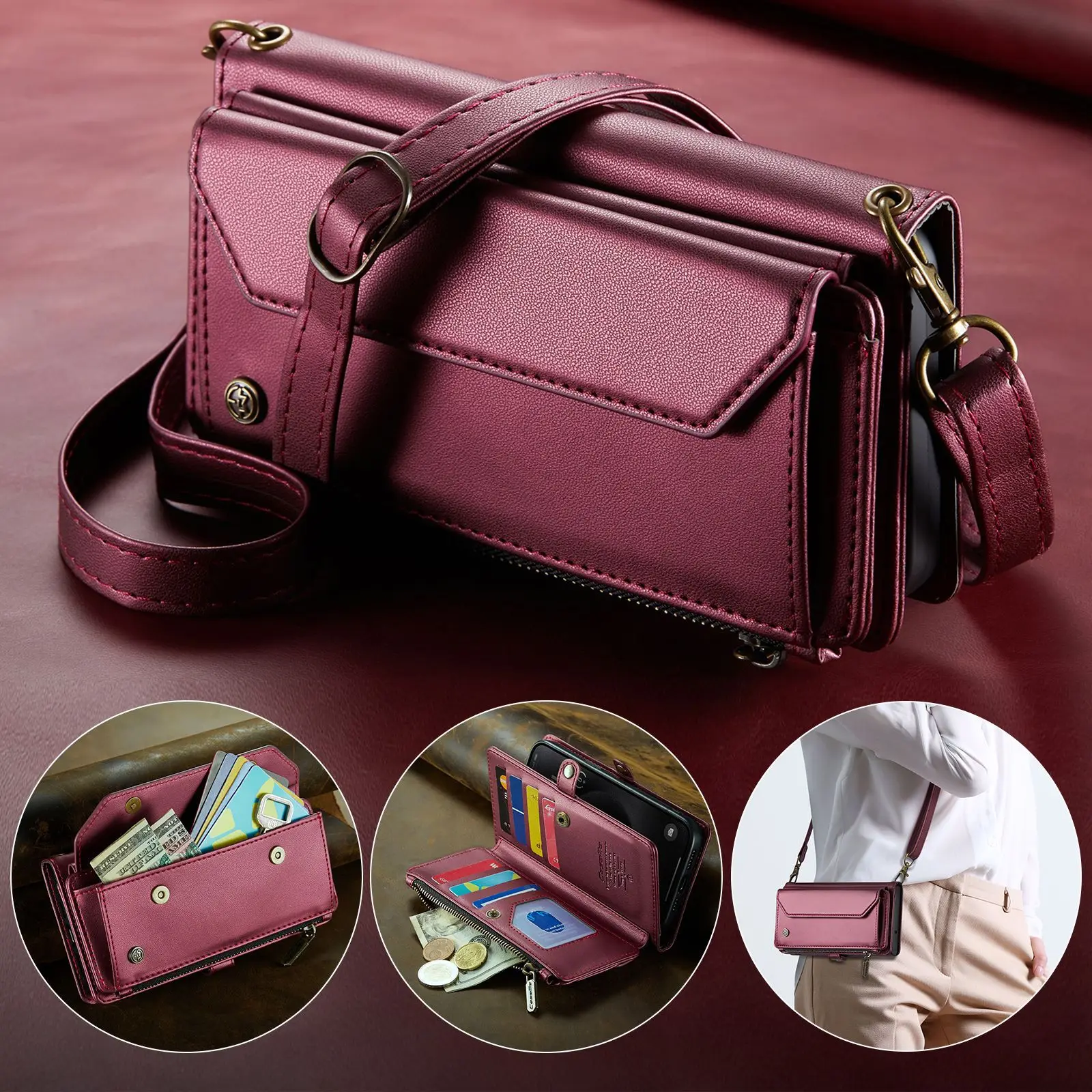 Drahtlose Lade Leder Wallet Hülle mit Crossbody für iPhone 17–11