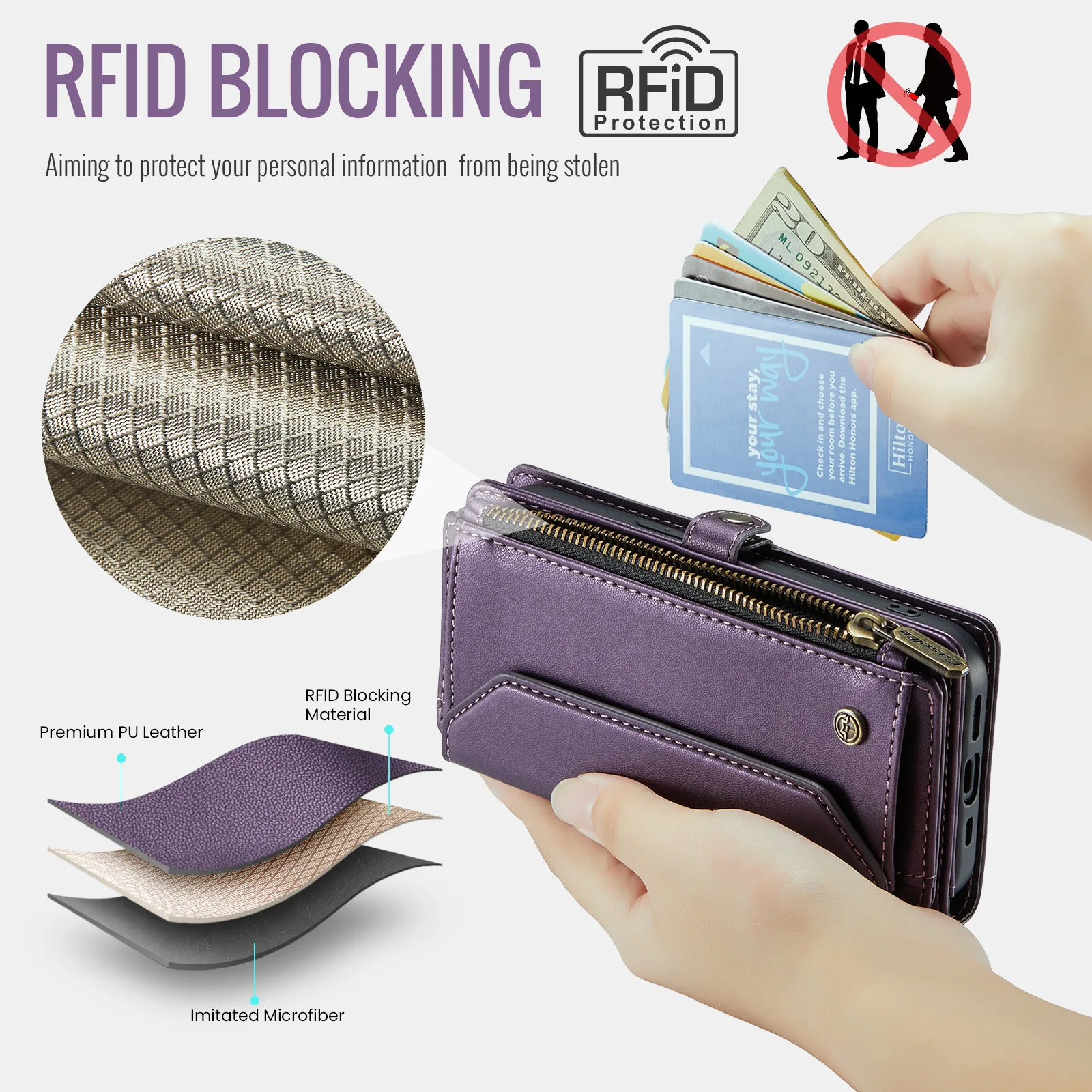 Diese drahtlose Lade-Handytasche von XIAORAN ist speziell für iPhone Modelle von 11 bis 17 Pro Max entwickelt und vereint Funktionalität mit stilvollem Design. Hergestellt aus hochwertigem PU-Leder bietet sie eine langlebige und elegante Optik. Die Tasche verfügt über insgesamt 10 Kartenfächer, ein separates Geldfach sowie eine praktische Reißverschlusstasche für Kleingeld oder wichtige Kleinigkeiten.