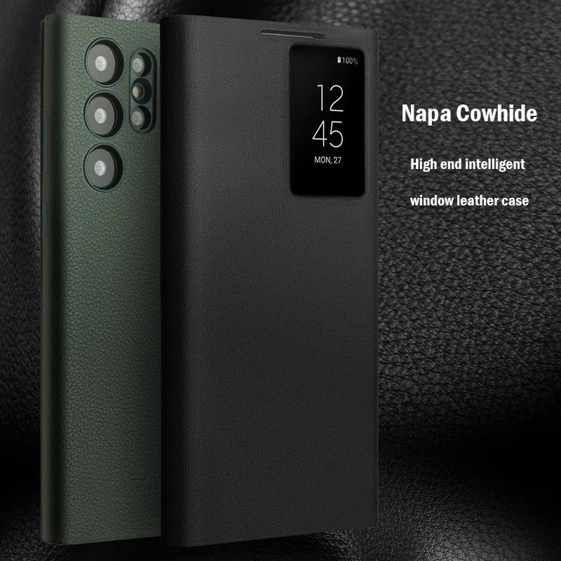 Echtes Leder Flip Case für Samsung Galaxy S23 – Staubdicht & Kabellos Ladefähig