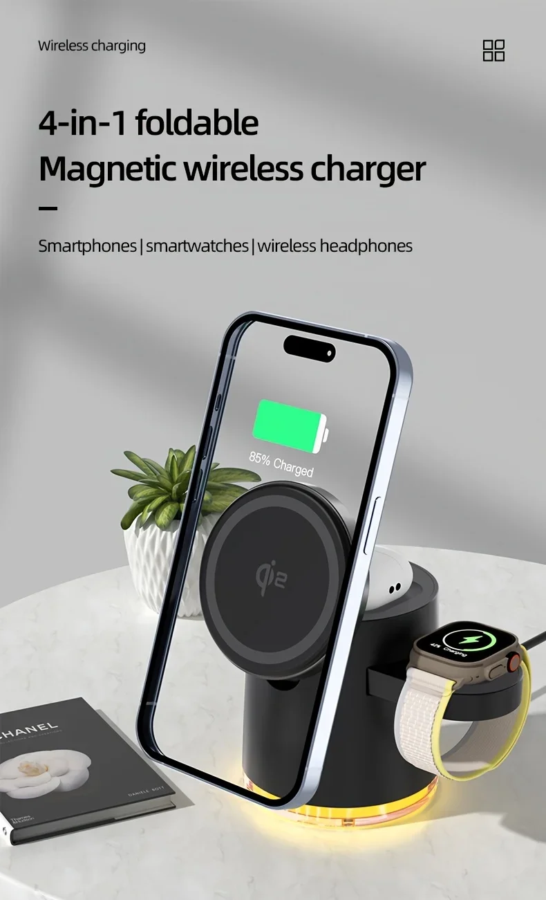 4-in-1 Faltbare Magnetische Ladestation 15W Schnellladen
