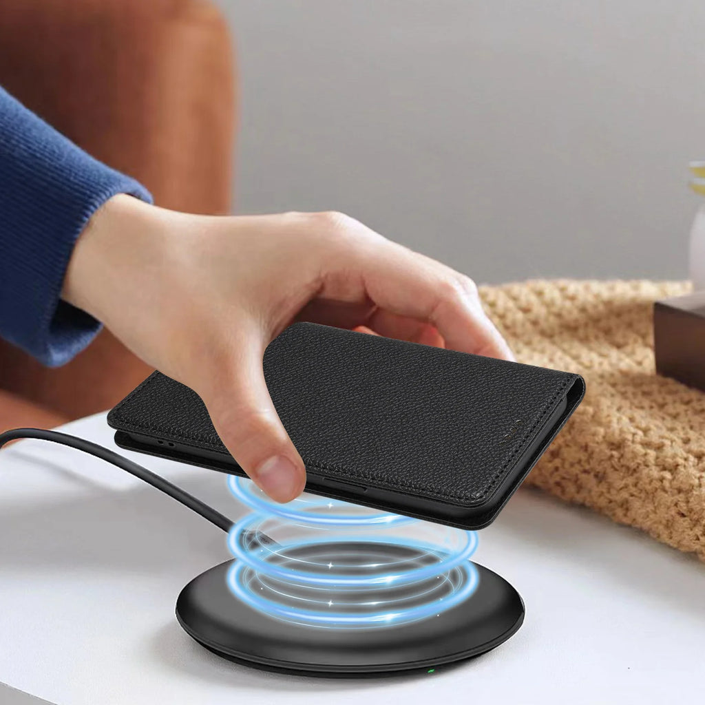 Die Hülle verfügt über ein integriertes Kartenfach für Kreditkarten, Ausweise oder Geldscheine und kombiniert Wallet-Funktion mit Flip-Design. Dank der magnetischen Verschlussfunktion bleibt Ihr Smartphone sicher geschlossen, während die Standfunktion bequemes Freihand-Betrachten von Videos oder Videocalls ermöglicht.