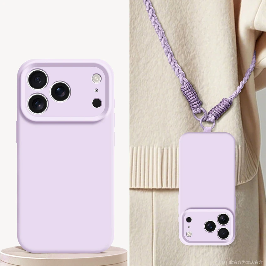 Flüssigsilikon-Handyhülle mit Umhängeband und Kameraschutz für iPhone 17 Pro Max, 17 Air, 17 Pro, 16, 15, 14 Plus – Stoßfeste Coque-Abdeckung