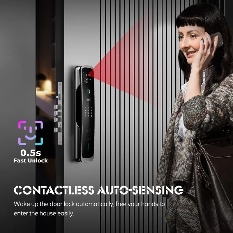 Das Catchface V6 Gesichtserkennung Smart Lock bietet eine fortschrittliche und vielseitige Lösung für die Sicherheit Ihres Zuhauses. Mit der Möglichkeit, per Gesichtserkennung, Fingerabdruck, Passwort, Karte, mechanischem Schlüssel oder über die Tuya WLAN-App zu entsperren, gewährleistet dieses intelligente Türschloss maximalen Komfort und Sicherheit.