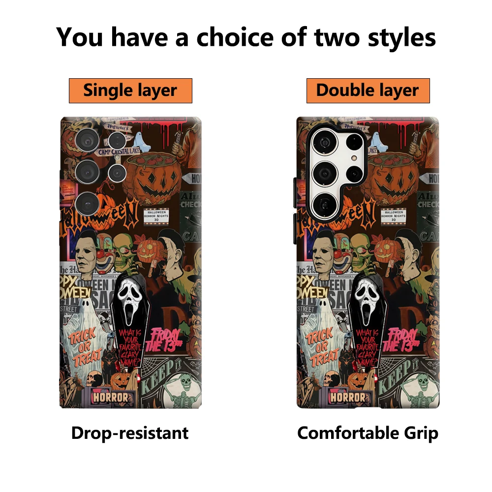 Gruselige Halloween Horror Handyhülle für Samsung Galaxy S25 S24 S23 Ultra – Glänzender Stoßschutz mit Doppel-Layer