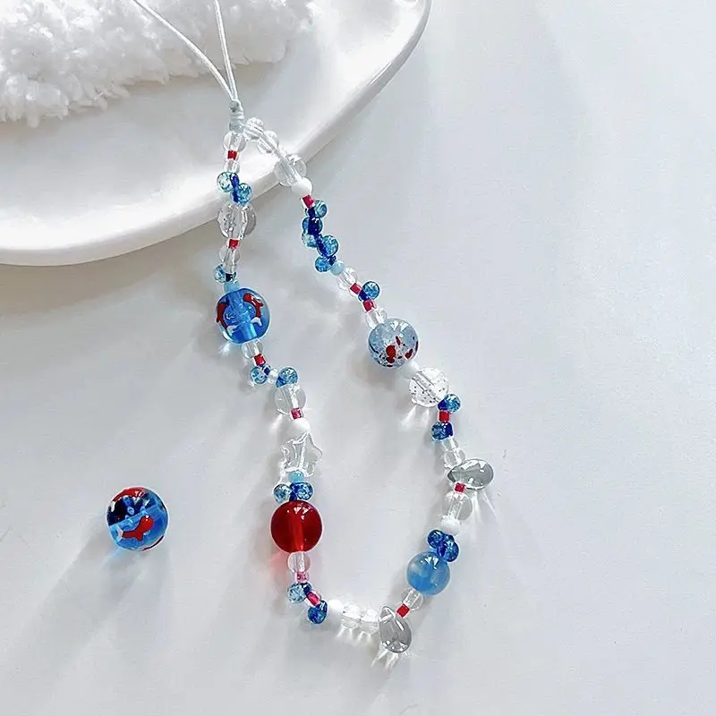 Tauchen Sie ein in den trendigen Charme dieses einzigartigen Lanyards mit Handyhülle. Das Originaldesign zeigt ein verspieltes, blasiges Goldfisch-Motiv, kombiniert mit roten und blauen Perlen, die Ihrem Zubehör eine stilvolle und lebendige Note verleihen. Das Lanyard ist vielseitig einsetzbar, eignet sich perfekt als Dekoration und bietet gleichzeitig eine praktische Befestigungsmöglichkeit für Ihr Handy oder Ihre CCD-Kamera. Die Kombination aus modischem Aussehen und Funktionalität macht dieses Accessoire ideal für den Alltag oder besondere Anlässe.