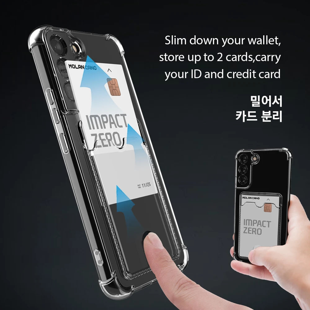Die MOLAN CANO TPU Wallet Hülle bietet einen klaren, funktionalen und zuverlässigen Schutz für Ihr Samsung Galaxy Smartphone. Mit ihrer vollständigen Abdeckung schützt sie Ihr Gerät rundum vor alltäglichen Beschädigungen. Die Hülle besteht aus hochwertigem, vergilbungsresistentem TPU-Kunststoff, der dauerhaft klar bleibt und dabei angenehm weich in der Hand liegt.