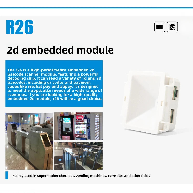 Der Scanner verwendet CMOS-Technologie und eine LED-Lichtquelle, die für präzise und klare Scan-Ergebnisse sorgt. Die Schnittstelle ist USB, was eine einfache Verbindung mit verschiedenen Systemen ermöglicht. Dieses Modul wurde speziell für eingebettete Anwendungen entwickelt und findet breite Verwendung in Supermarkt-Kassen, Verkaufsautomaten, Drehkreuzen und weiteren Einsatzbereichen, die eine schnelle und genaue Datenerfassung erfordern.