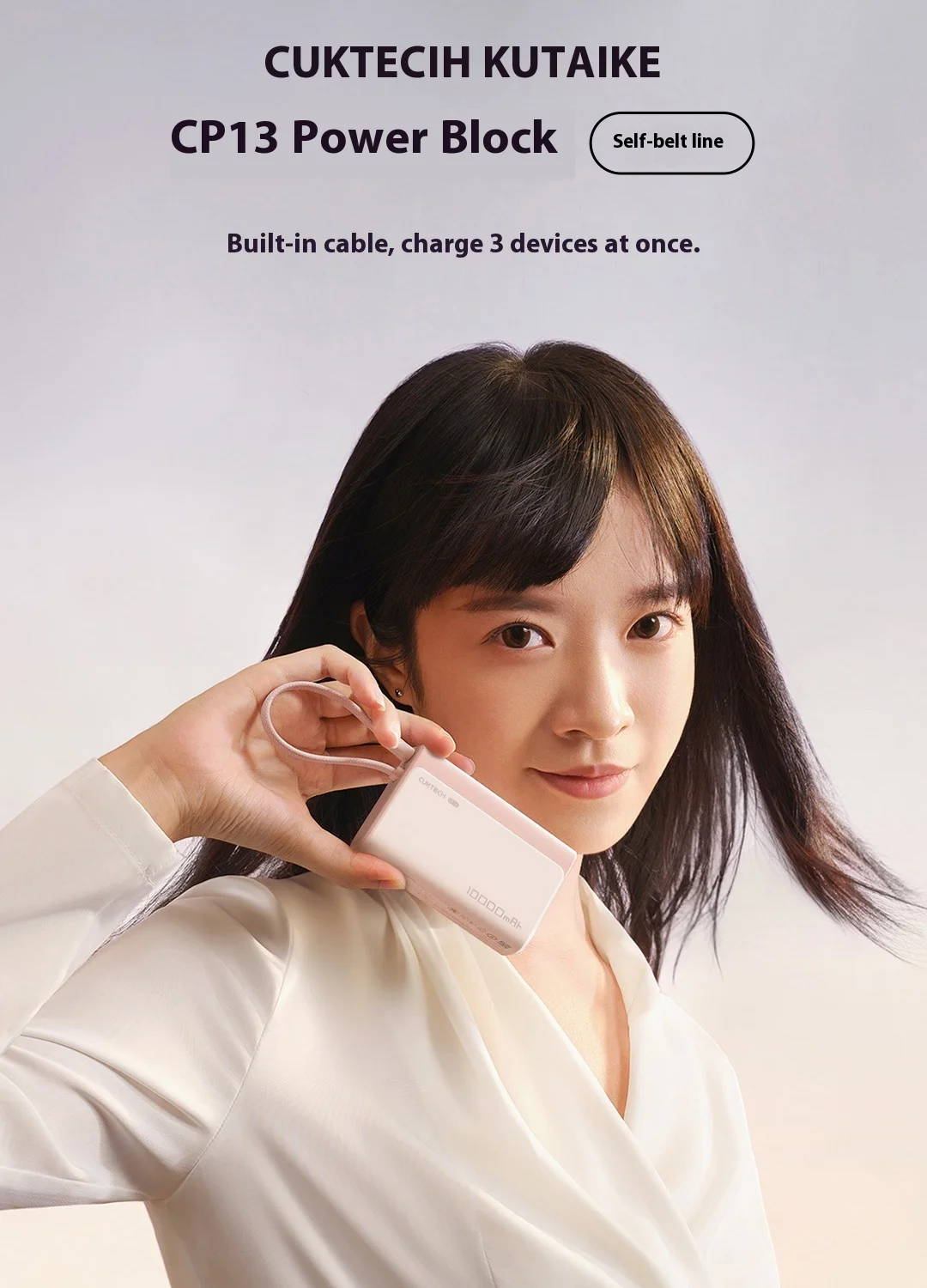 Die Powerbank verfügt über integrierte Kabel, die das Laden vereinfachen und Kabelsalat vermeiden. Der Eingang erfolgt über USB Typ C mit einer Eingangsleistung von 27W, was die Powerbank schnell selbst wieder auflädt. Als Ausgang steht ein USB Typ C Anschluss zur Verfügung, der vielseitig kompatibel mit verschiedenen Smartphones und anderen Geräten ist. Zusätzlich gibt es einen USB-A Anschluss für weitere Kompatibilität.