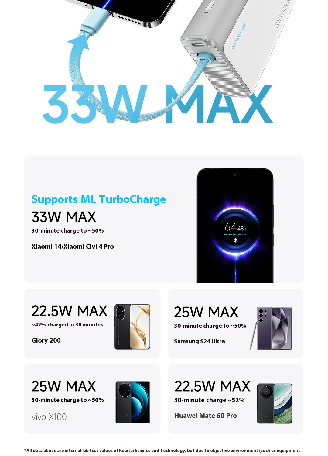 Diese tragbare Powerbank mit 10000mAh Kapazität ist ideal für den schnellen und zuverlässigen Energiebedarf unterwegs. Ausgestattet mit einem hochwertigen Lithium-Ionen-Akku, unterstützt sie moderne Schnellladeprotokolle wie PPS, PD, QC, SCP und UFCS, was eine effiziente und schnelle Aufladung Ihrer Geräte garantiert.