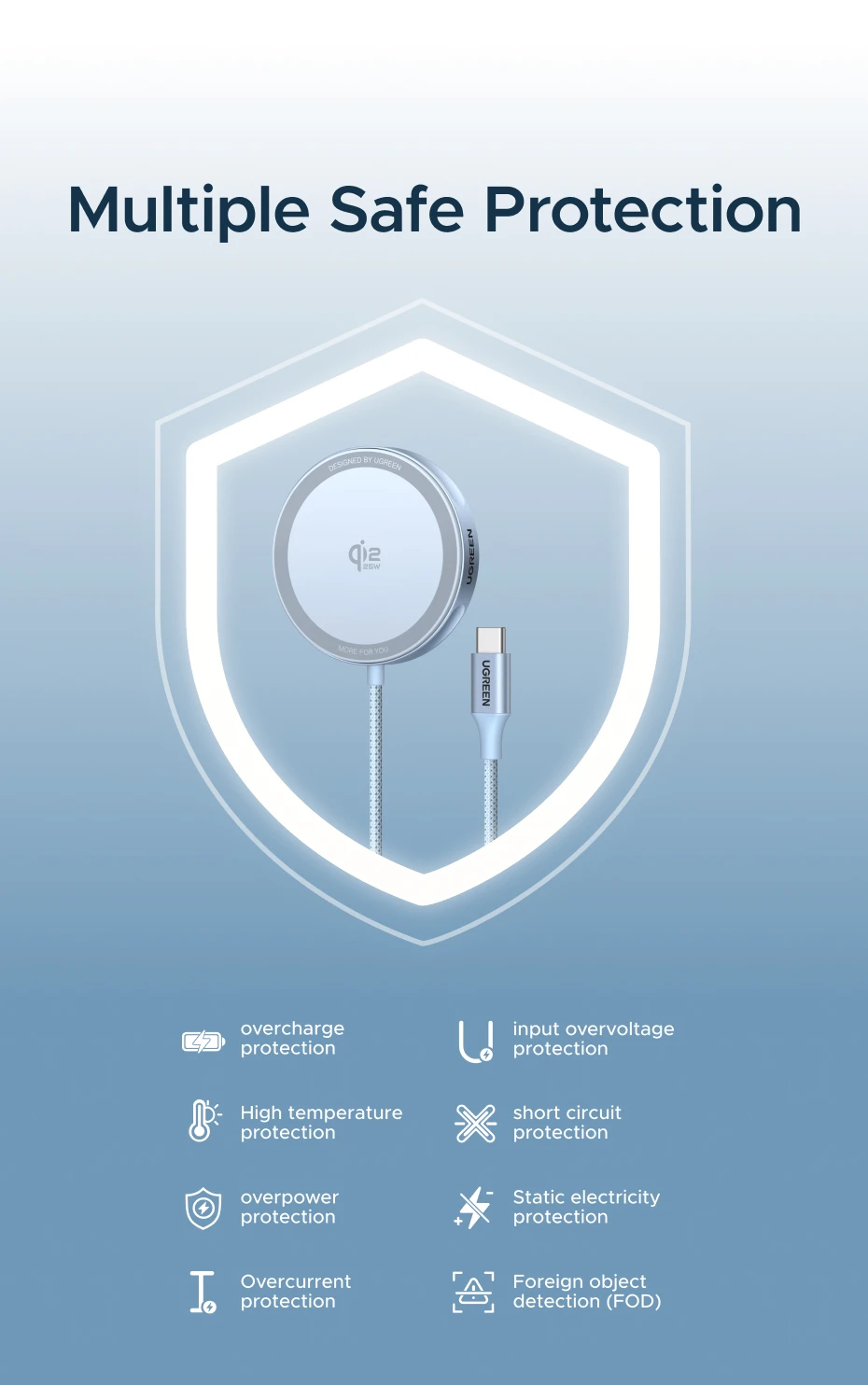 Dieses Ladegerät ist RoHS- und CE-zertifiziert und garantiert sichere Nutzung ohne schädliche Chemikalien. Die Kombination aus magnetischer Fixierung, kabellosem Laden und schneller Ladeleistung macht es zu einem unverzichtbaren Zubehör für alle iPhone-Nutzer, die Wert auf Komfort und Effizienz legen.