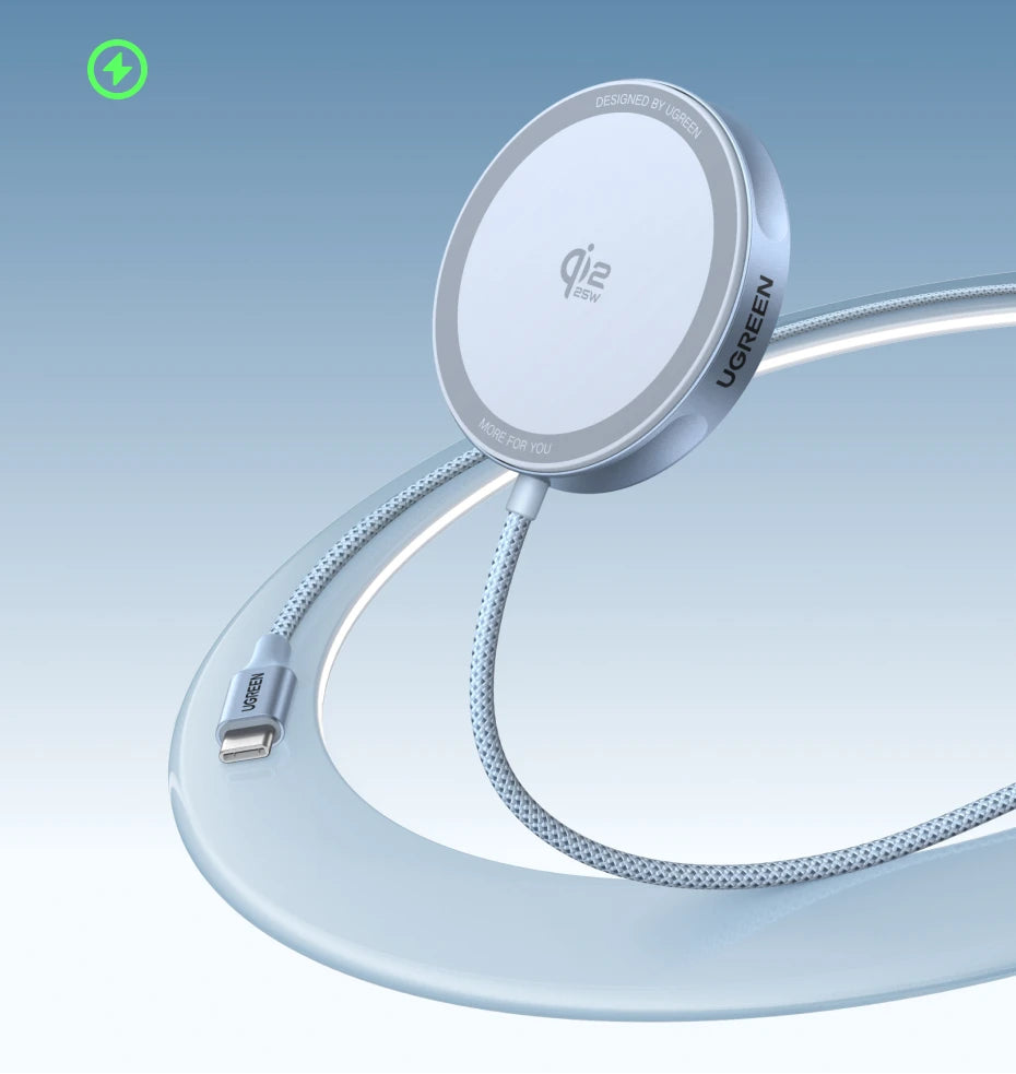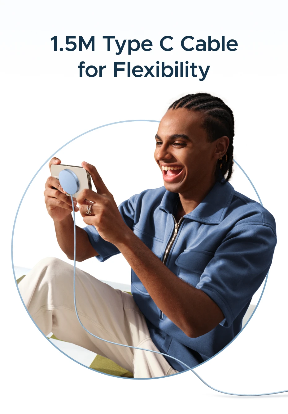 Die magnetische Ausrichtung sorgt dafür, dass das iPhone automatisch korrekt positioniert wird, um einen stabilen Ladevorgang zu gewährleisten. Das kompakte Design macht das Ladepad ideal für den Schreibtisch, Nachttisch oder unterwegs. Der Typ-C-Anschluss ermöglicht eine schnelle und stabile Stromversorgung, während das integrierte Kabel eine einfache Verbindung zu Netzteilen, Powerbanks oder Computern sicherstellt.