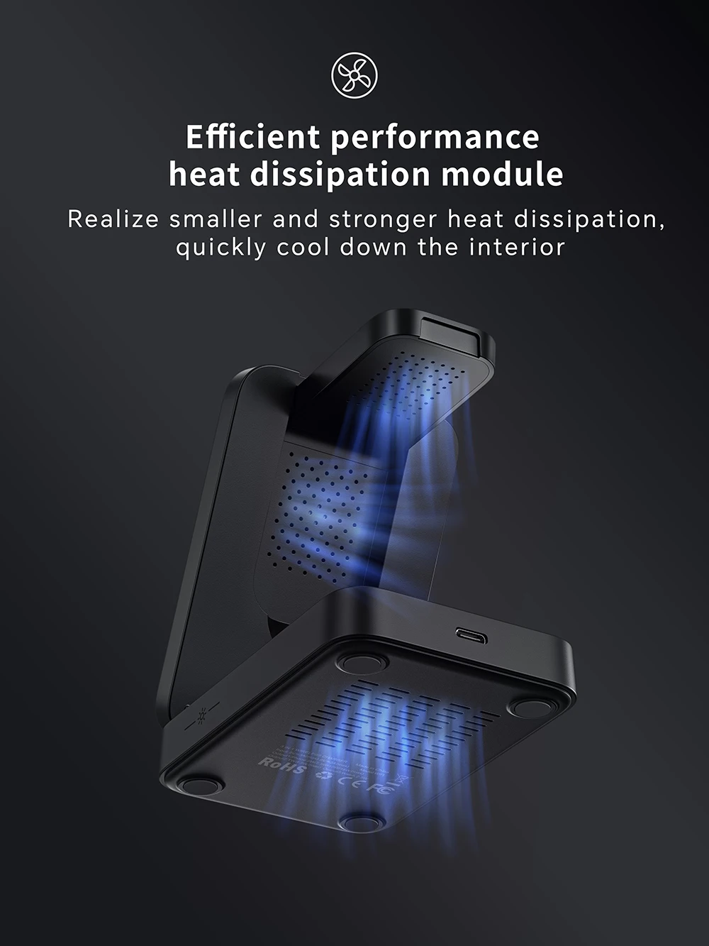 Ein integriertes Wärmeableitungsmodul sorgt für eine effiziente Kühlung, um Überhitzung zu vermeiden und eine stabile Leistung zu gewährleisten. Zusätzlich verfügt das Ladegerät über ein warmes Nachtlicht mit drei Helligkeitsstufen (niedrig, hoch und Atemmodus), das sich als sanfte Beleuchtung ideal für das Schlafzimmer oder Büro eignet.