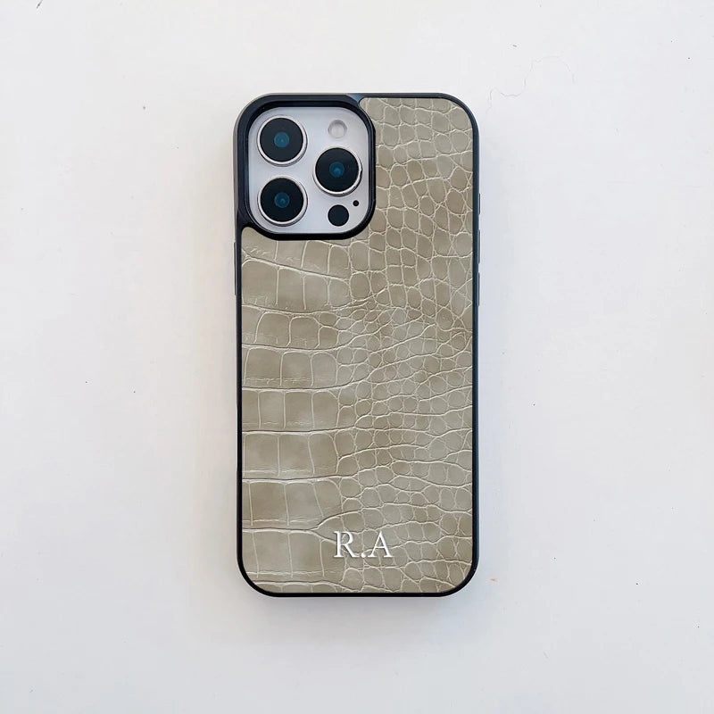Maßgeschneiderte Lederhülle mit Initialen für iPhone 16 Pro Max