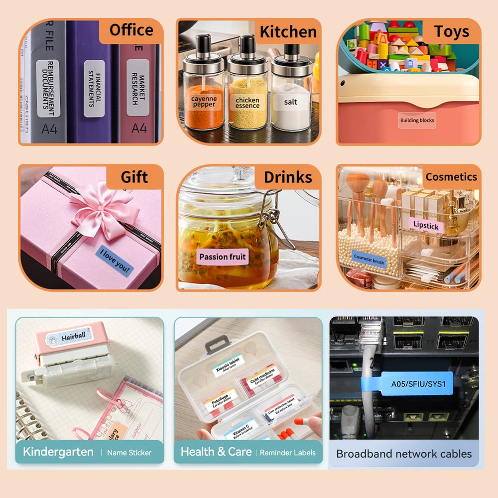Der Niimbot D110 Mini-Thermo-Etikettendrucker ist ein kabelloser, tragbarer Etikettenhersteller, der ideal für den Heimgebrauch, kleine Unternehmen oder das Büro ist. Mit seiner kompakten Größe, einfachen Bedienung und Bluetooth-Verbindung bietet er eine effiziente Lösung zur Organisation und Beschriftung verschiedenster Gegenstände – von Küchenbehältern über Kabel bis hin zu Büromaterialien.