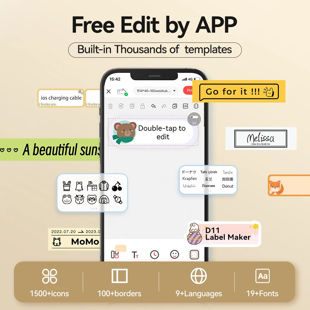 Die Thermodrucktechnologie sorgt für tintenloses Drucken – ganz ohne Farbband oder Toner. Einfach Thermopapier einlegen und über die Niimbot-App Texte, Barcodes, QR-Codes oder Symbole gestalten und direkt drucken. Der D110 unterstützt Druckbreiten von 12–15 mm, was ihn ideal für transparente, farbige oder Kabeletiketten macht.