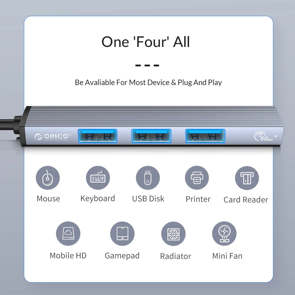 ORICO Aluminium USB-C HUB 4-Port – Kompakt & Schnell