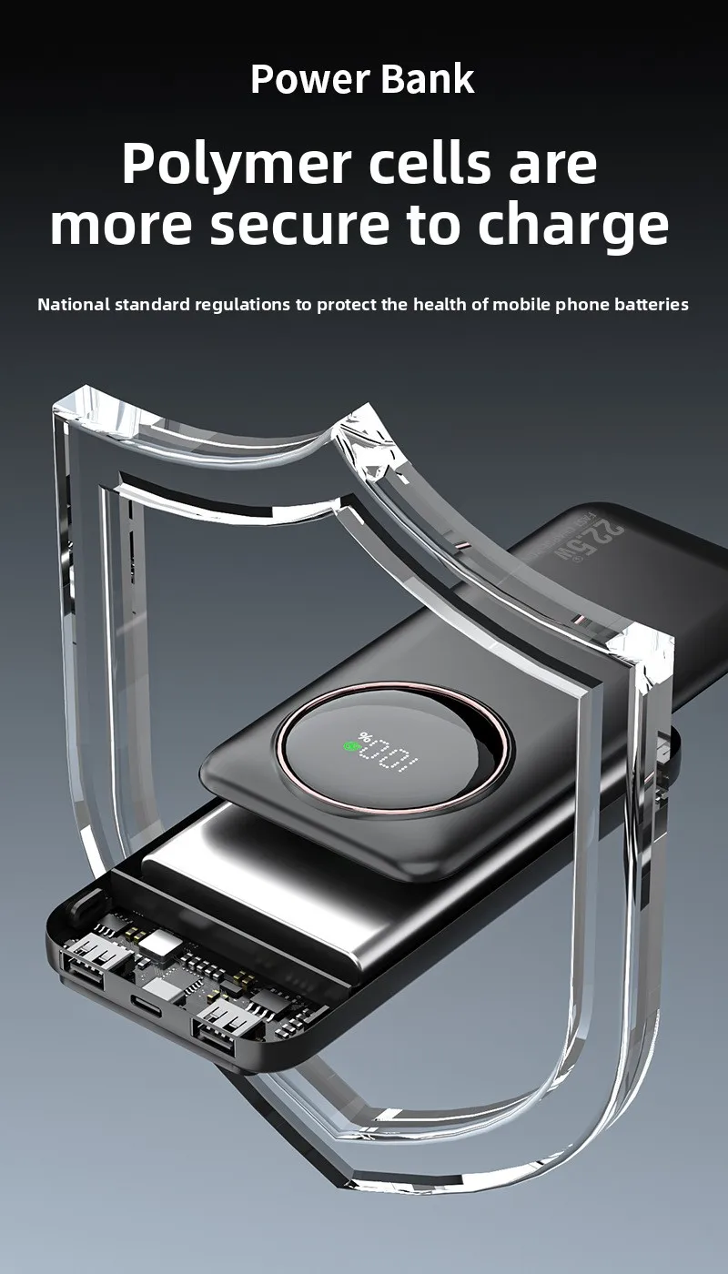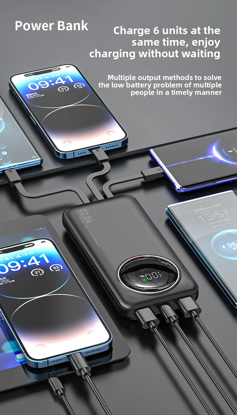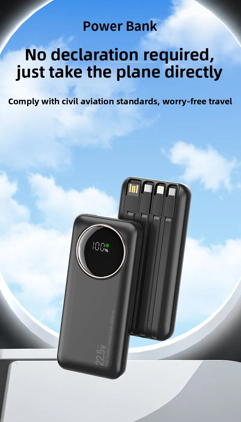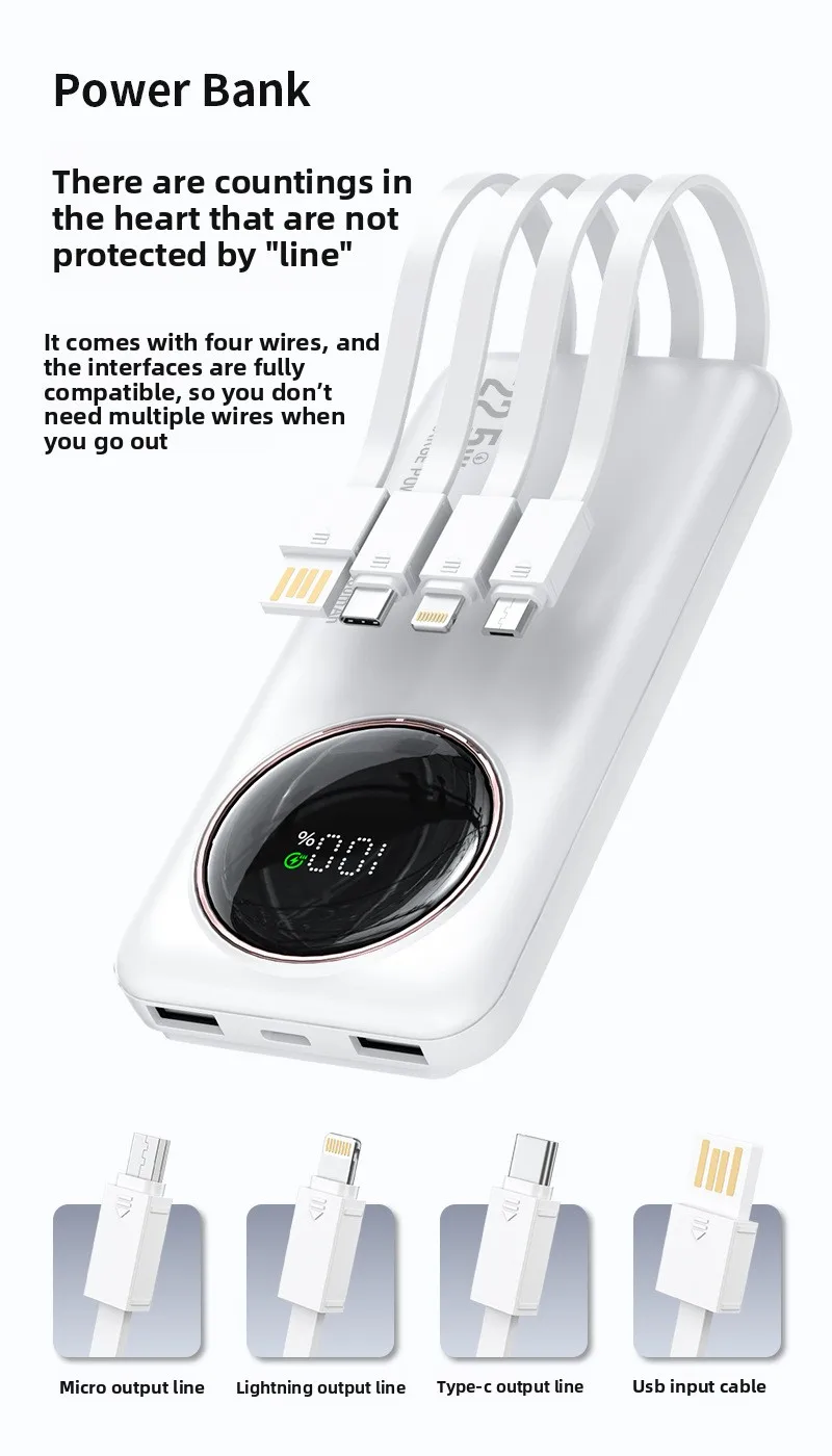 Diese tragbare Powerbank mit einer beeindruckenden Kapazität von 30.000 mAh bietet zuverlässige Energieversorgung für Smartphones, Tablets und andere mobile Geräte. Dank der integrierten Teleskopkabel ist kein separates Kabel mehr nötig – die Powerbank ist sofort einsatzbereit. Sie unterstützt schnelles Laden mit bis zu 22,5 W Leistung über verschiedene Protokolle, einschließlich QC3.0.