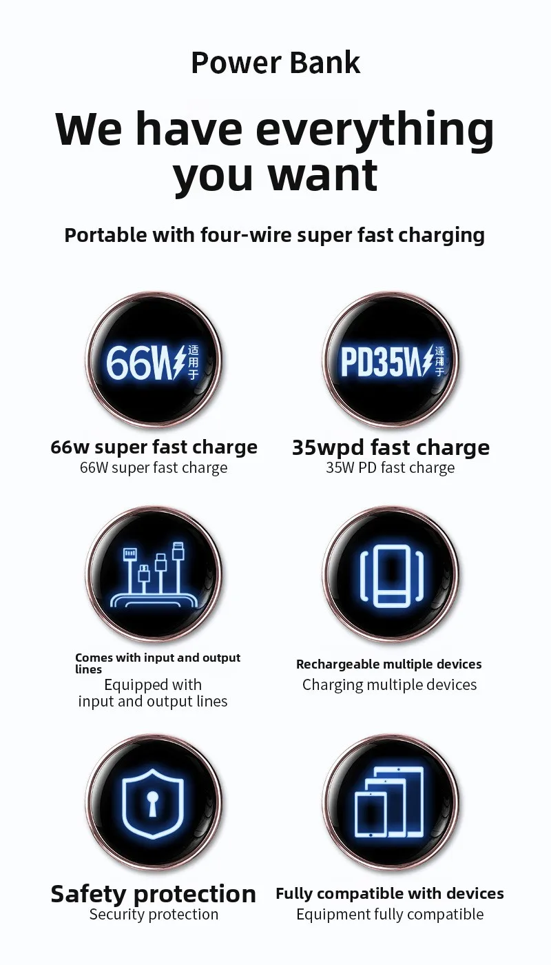 Das kompakte, tragbare Design mit praktischem Haltebügel macht die Powerbank ideal für unterwegs, Reisen oder den täglichen Gebrauch. Trotz der hohen Kapazität ist sie handlich und leicht zu verstauen.