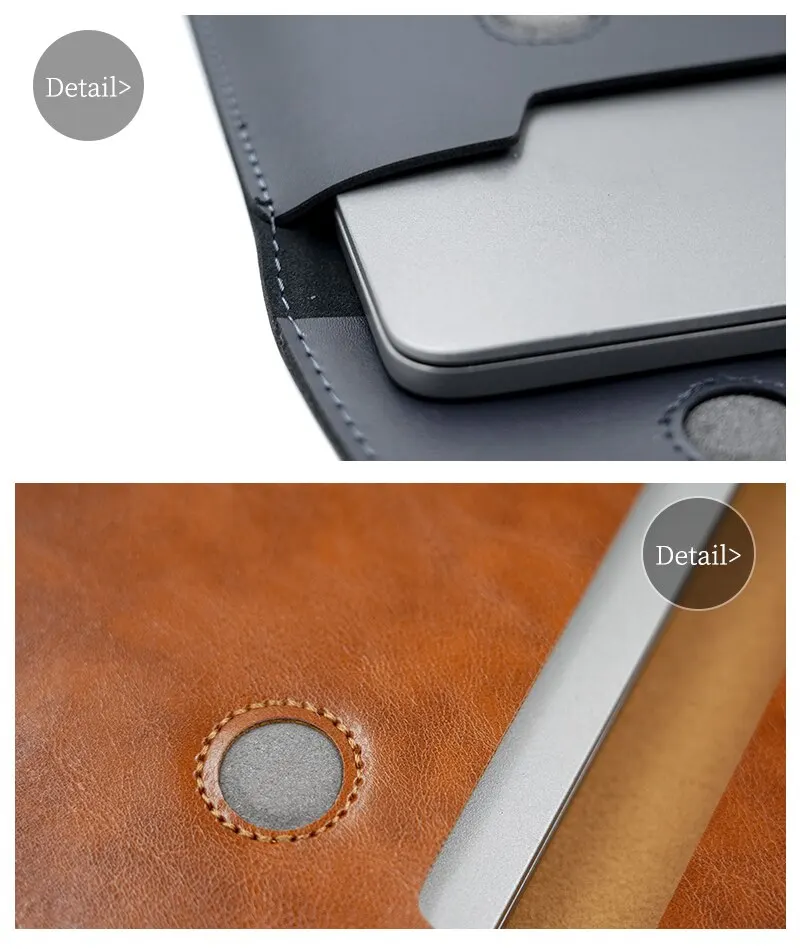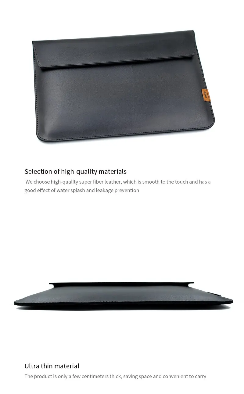 Die Außenseite besteht aus wasserabweisendem, kratzfestem PU-Leder, das Ihren Laptop zuverlässig vor Staub, Spritzwasser und alltäglicher Abnutzung schützt. Der Innenraum ist mit weichem Wildleder ausgekleidet, das Ihr Notebook sanft umhüllt und Kratzer auf der Oberfläche verhindert. Mit einem Gewicht von nur ca. 170 g ist die Hülle leicht und dennoch robust, ideal für unterwegs – ob zur Arbeit, in die Schule, ins Café oder auf Reisen.