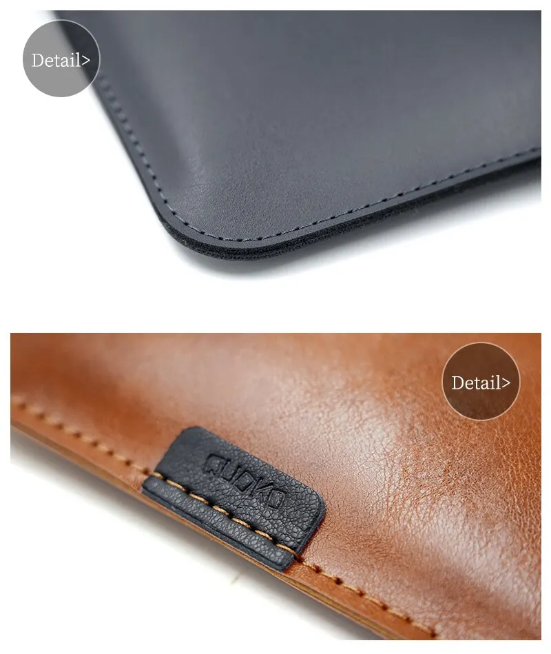 Die Quoko Laptop-Hülle aus hochwertigem PU-Leder wurde speziell für 14-Zoll-Laptops entwickelt und bietet einen eleganten und zuverlässigen Schutz für Ihr Gerät. Sie ist kompatibel mit MacBook Pro 13, MacBook Air 13 und MacBook Pro 14. Dank des Magnetknopfs lässt sich die Tasche sicher verschließen, während das schlanke, minimalistische Design für einen modernen Look sorgt.