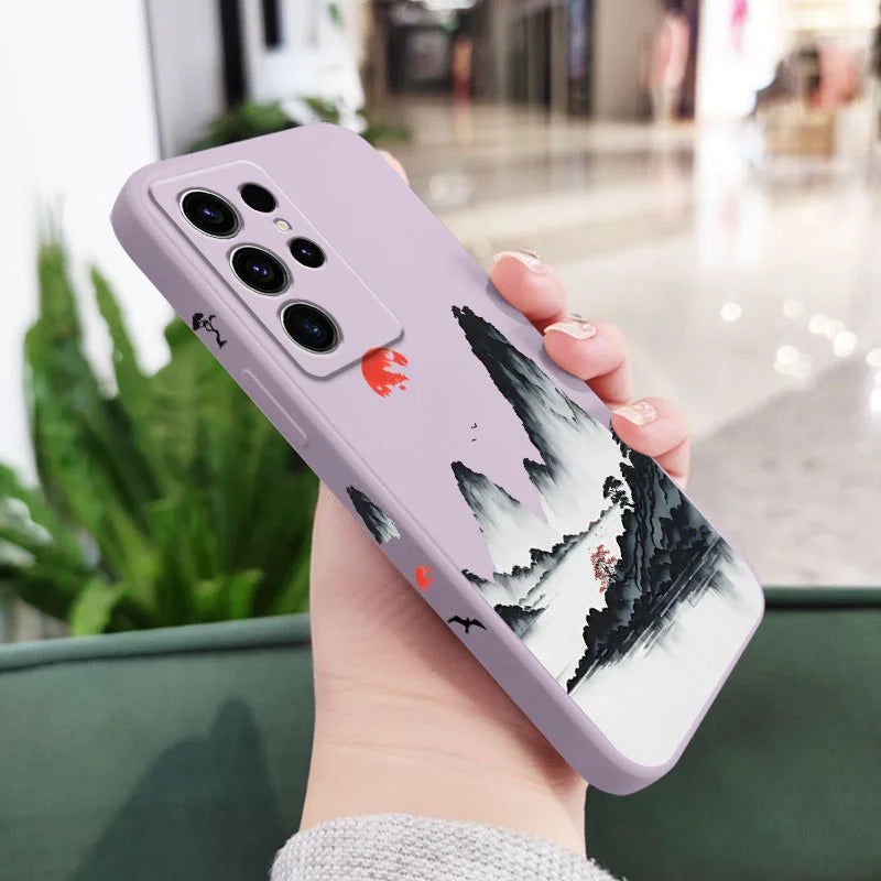 Rote Sonnenuntergang Handyhülle für Samsung Galaxy S25FE S24 S23 S22 Ultra Plus FE – Stylischer Schutz mit Farbverlauf