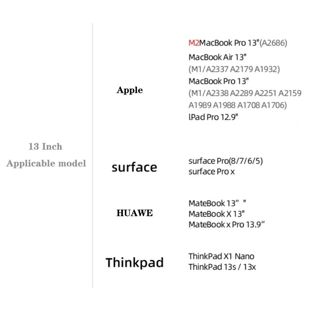 Anwendbare Modelle: MacBook Pro 13, MacBook Pro 15, MacBook Air 11, MacBook Air 12, MacBook 12, MacBook Pro 14, MacBook Pro 16, Surface Laptop 13,5