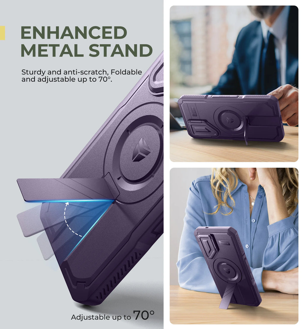 Der integrierte Kameraschutz wurde über 5.000 Mal getestet und schützt die Linse zuverlässig vor Kratzern und Beschädigungen, während er gleichzeitig flexibel genug bleibt, um die Kamera jederzeit problemlos zu verwenden. Der verstellbare Metall-Kickstand aus hochwertiger Aluminiumlegierung ermöglicht stabile Nutzung im Hoch- und Querformat und sorgt für komfortables freihändiges Betrachten von Inhalten.