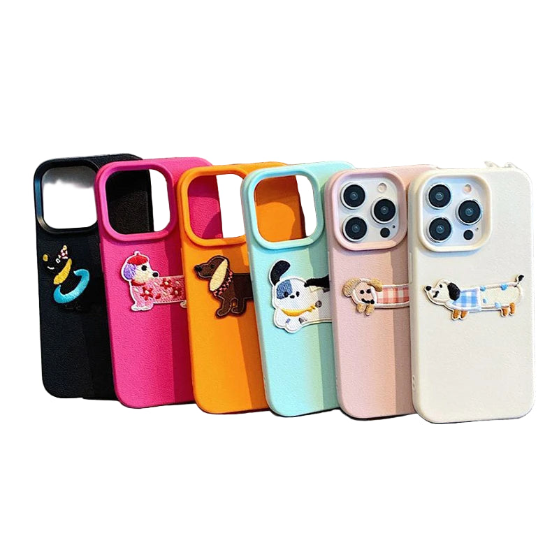 3D-Stickerei im süßen Cartoon-Hund-Design Vollschutz-Gehäuse (Full Coverage) für iPhone 16 und 17