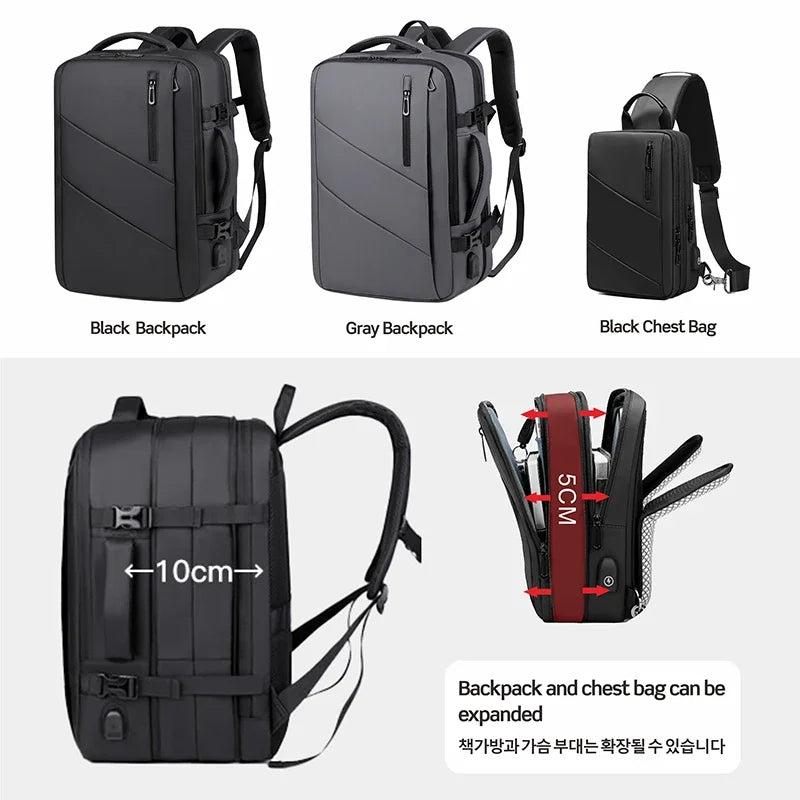 Mit einer Kapazität von 36 bis 55 Litern und mehreren großzügigen Außentaschen ist der Rucksack erweiterbar und bietet ausreichend Platz für alles, was Sie im Alltag oder auf Reisen benötigen. Die wasserabweisende Oberfläche schützt Ihre Sachen zuverlässig vor Regen und Spritzwasser – perfekt für Pendler in Städten wie Zürich, Basel, Bern oder Genf.